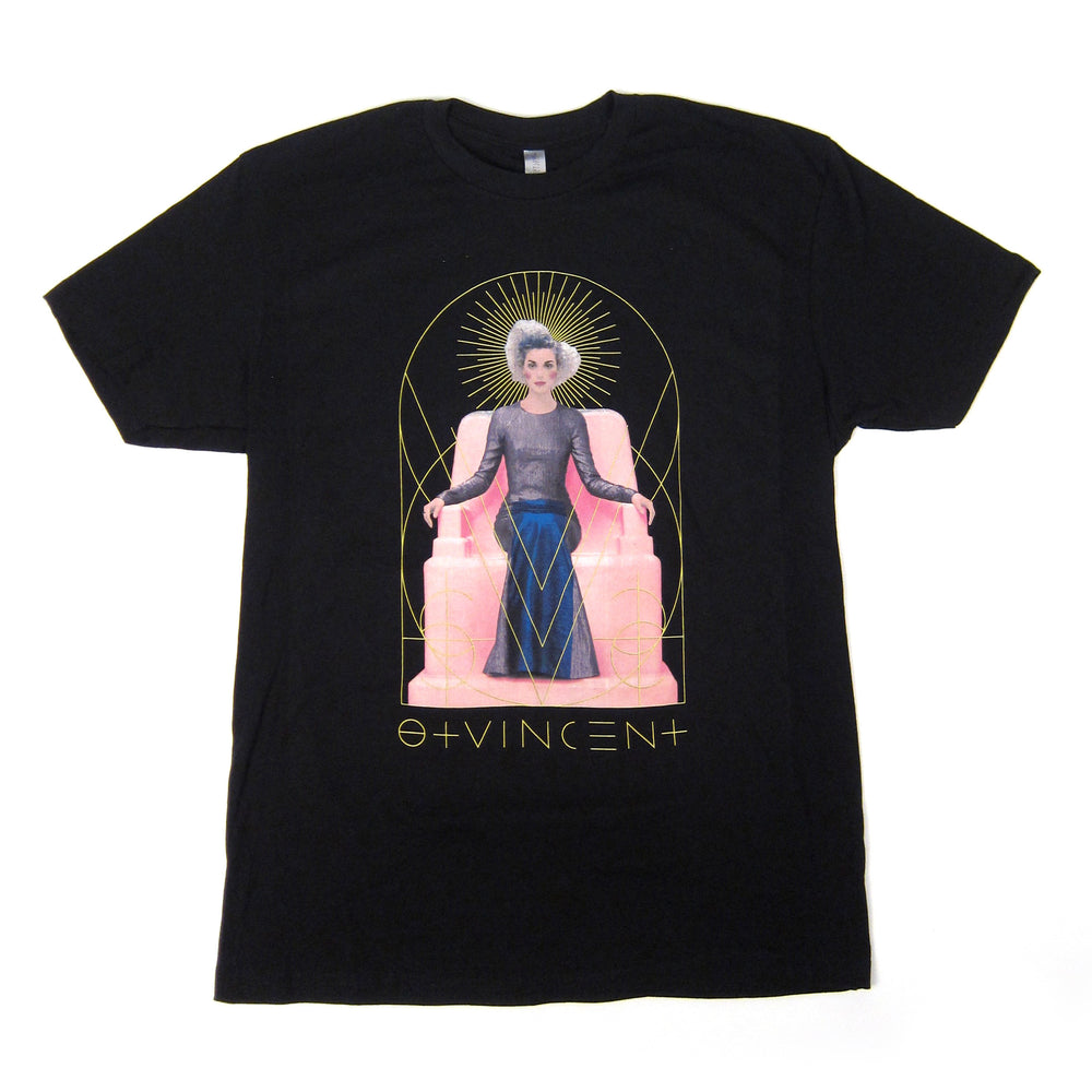Divine artwork from St. Vincent's 2014 self-titled album printed on the front of 100% cotton, standard fit tees.