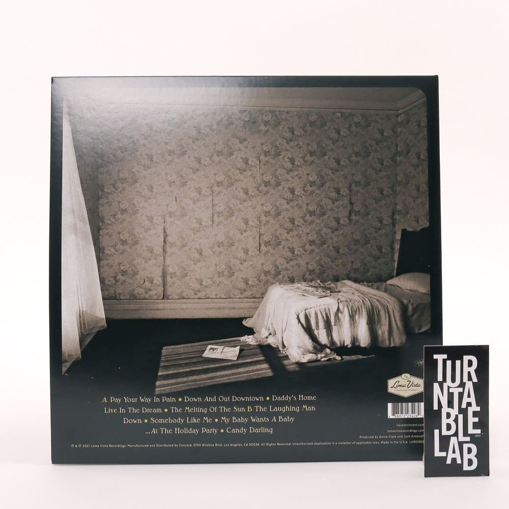 "Produced by Annie Clark and Jack Antonoff, Daddy's Home is the sixth album from St. Vincent. It is another facet of an ever-evolving artist regarded by many as the most consistently innovative and intriguing presence in modern music. Daddy's Home collects stories of being down and out in downtown NYC. Last night's heels on the morning train. Glamour that's been up for three days straight. Vinyl LP pressing in gatefold jacket. Includes poster. " Loma Vista