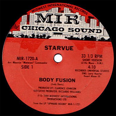 Very welcome reissue of this rare groove holy grail. Starvue's "Body Fusion" has appeared on a few soul compilations in the past, but this is the first time we've had it on 12", and with convincing label reproductions to boot. The track has been highly sought-after since it's 1980 release on Midwest International thanks to its supremely sexy and sensuous soul steppin' groove produced by The Chi-lites' Clarence Johnson. Top it all off with stunning and emotive vocals and you have a pure soul masterpiece that withstands the test of time. Includes short version and long version on the flip. Recommended.