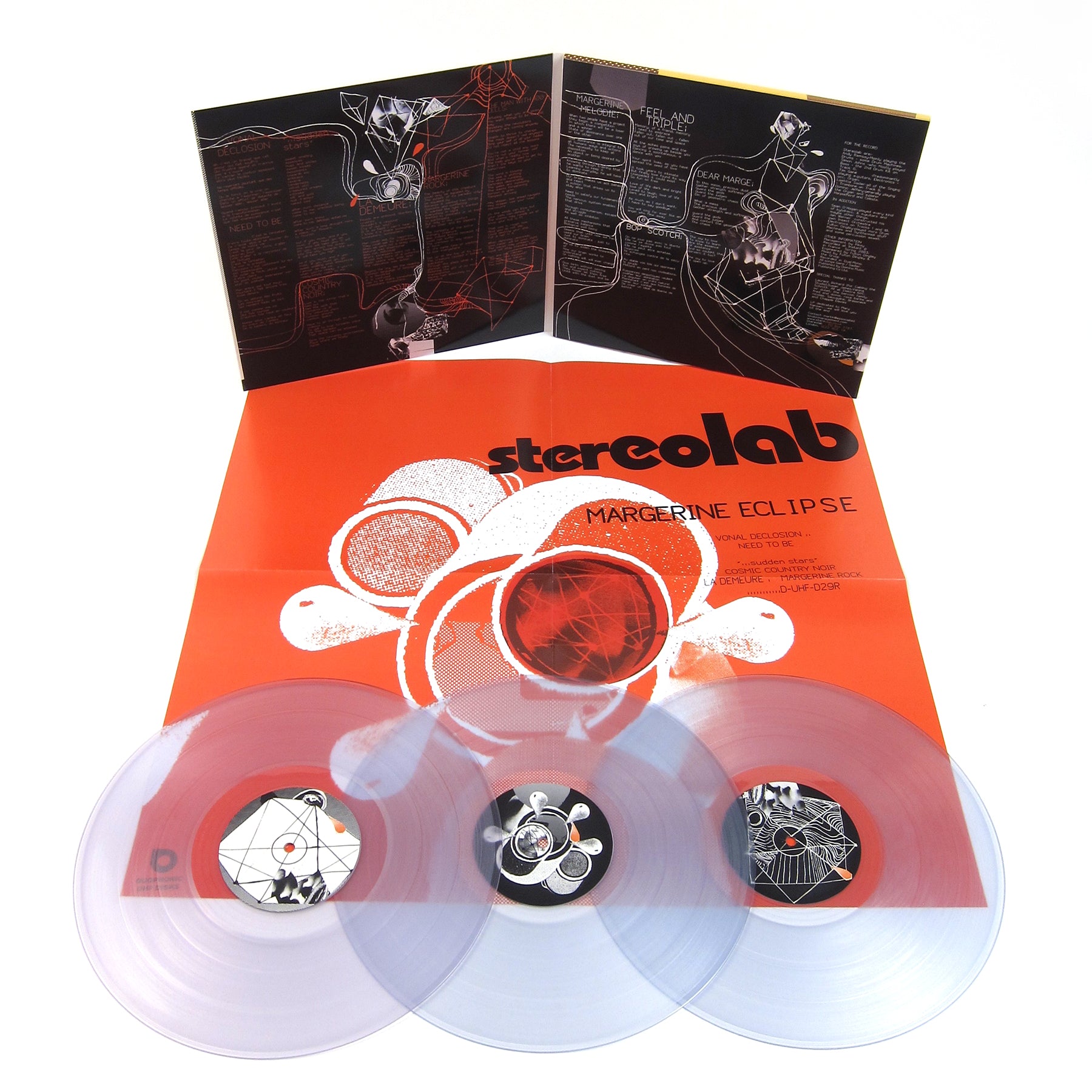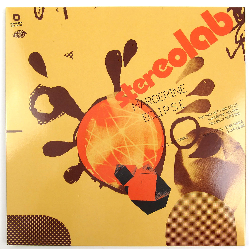 Stereolab return to their pre-Dots and Loops days with an album that reminds me of why I liked them so much to begin with. Rather than a major shift in production, it's the melodies, harmonies and overall feeling of the songs that have me reminiscing. Listen to "Margerine Rock!" and tell me it doesn't sound straight off Mars Audiac Quintet. "Margerine Melody" on the other hand is probably the only track on ME that really stretches their sound. I could see the 120ish beat fitting into a house mix nicely. Also check "Cosmic Country Noir" for some groundbreaking drum machine work. Listen to "...sudden stars" to get a full picture of just how sweet Laetitia's vocals get, even though Mary (RIP) is very much missed. The most interesting aspect of this album is an absurd production coup in which they recorded all the songs twice with different instruments and arrangements. One version plays on the left channel and the other on the right. This is a pretty amazing accomplishment, and the mix is absolutely seamless. Hardcore fans of Stereolab probably didn't even bother reading this review, but the rest of you should give it a try. Margarine Eclipse is packed with the kind of sound that made them famous in the first place. This expanded 3LP edition looks and sounds fantastic; the bonus LP includes all the tracks from the Rose, My Rocket-Brain! 7-inch and a selection of tracks from the Instant 0 In The Universe EP (previously only available on CD or an incredibly cumbersome 3x 7-inch boxset!), which will certainly contain some unknown treasures if you overlooked this underrated segment of Stereolab's ouvre. Includes giant foldout poster of the sleeve art with extensive liner notes from Tim Gane on the back and code for digital download. Recommended!