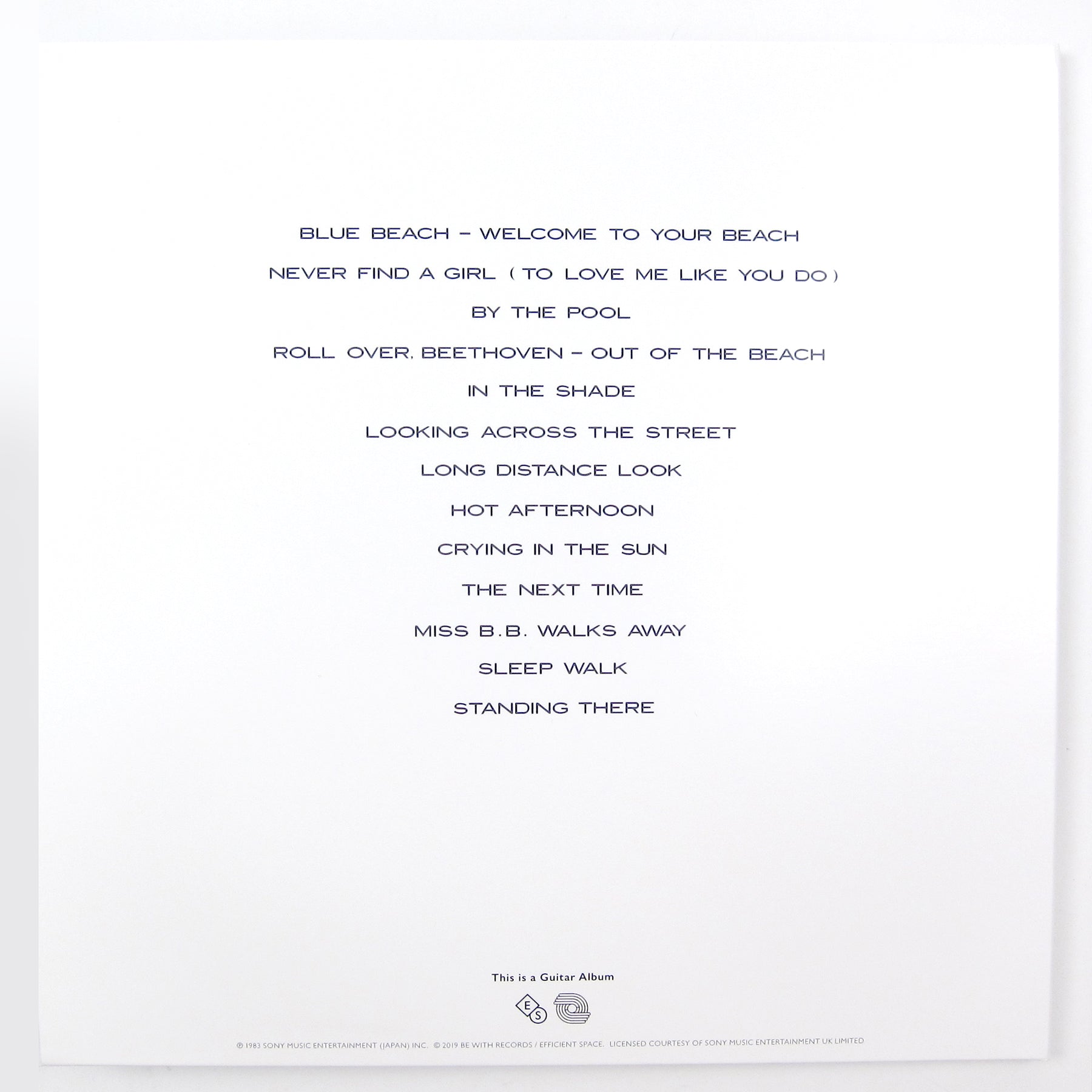 Steve Hiett was an English photographer, musician, artist, and graphic designer. His initial interest was in painting, but he switched to graphic design and photography in 1959. After school, he joined a psyche-pop band named Pyramid, this time on the road leading to him photographing the likes of Jimi Hendrix backstage throughout the 70’s. He settled on his signature style of photography in the 80’s, which feature over-saturated colors, unique framing, and strong flash. It was during this period of time that he released a solo guitar album and accompanying photo book titled Down On The Road By The Beach, but it was available exclusively in Japan and has remained quite obscure since. The album is inspired by the color “blue”, which the liner notes describe as “color and a psychological concept.” He says, “I just loved writing music and playing guitar. When all that came to a close for various reasons, I still took my guitar with me where ever I went. In the 80’s I made a guitar album in Japan and also played on some French TV commercials and actually had a hit on a record in France by the singer Valli which I co-produced and played guitar on. I am still working at playing guitar and writing music.” The LP features appearances from Japanese New Wave group The Moonriders, and is a heady combination of ambient pop and smooth jazz. It splits the difference between the acoustic experimentation of the Durutti Column, the guitar worship of MBV, and the electronic ambience of Washed Out, resulting in a record that is both of its time and wildly ahead of it. “Never Find A Girl” is layers of jangle with hazy vocals, “By The Pool” is heavily affected electric strums and dramatic keys. “In The Shade” is Carpenter-esque electronic textures with kaleidoscopic guitar. This album is a true obscurity, with used copies costing over $200 on discogs. This album is packaged in a gatefold sleeve, and includes a 12x12 book of photography. Highly recommended.