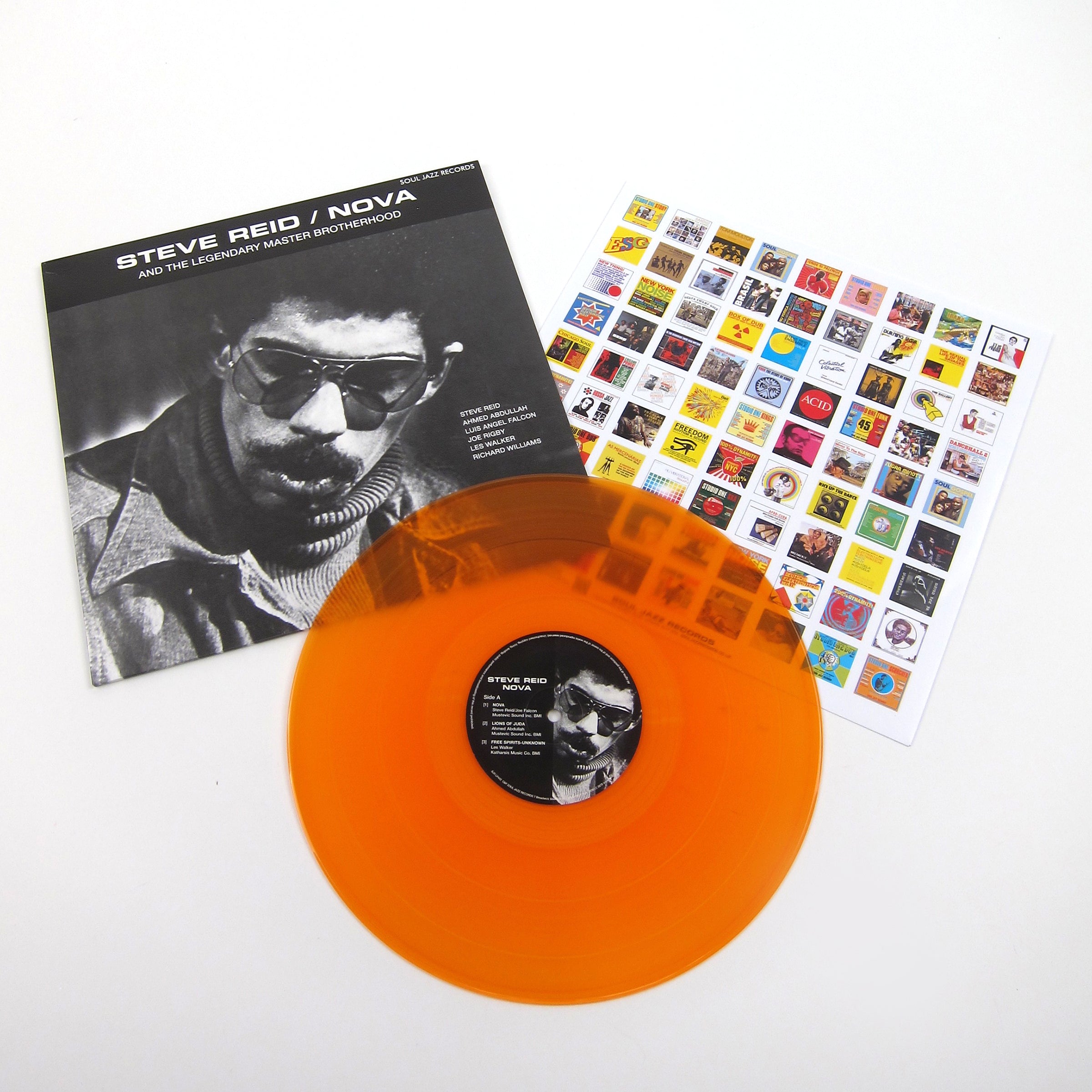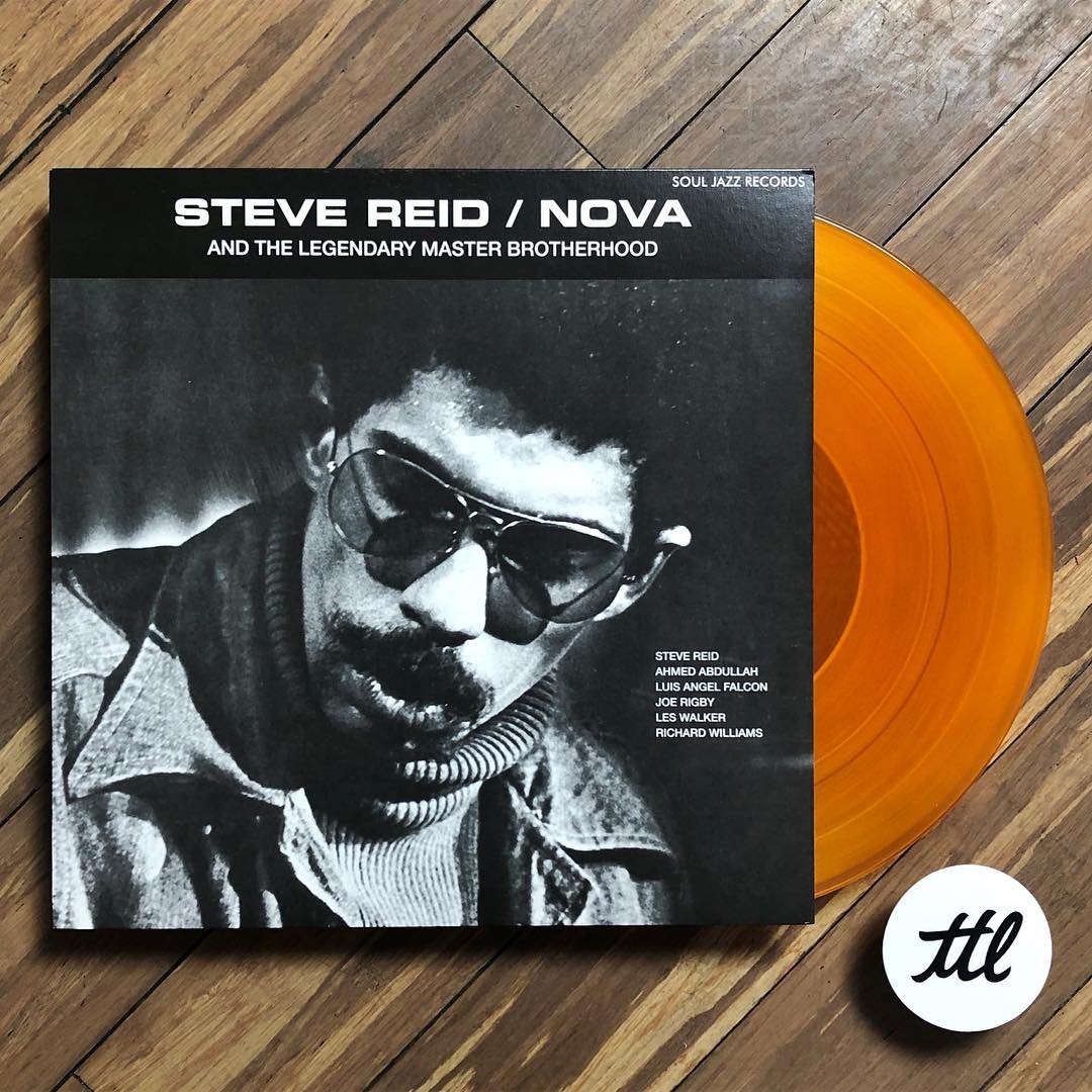 Reid was a staunch conscientious objector and in 1969, due to his beliefs, was sentenced to four years in prison for refusing to enlist in the Vietnam draft. After his release in 1974 he got straight down to business, formed the Legendary Master Brotherhood, started his own record label Mustevic Sound, and by 1976 had released his debut, Nova. It was the first in a series of stunning independent records he released throughout the late 70's, with originals of all three fetching pricey sums on the used market. The best way to describe the sound of Nova is "free-jazz-funk". Peep the title track or "Lions of Juda" for examples. At the turn of the century Reid paired up with Kieran (who refers to Reid as his "musical soul mate") and released a number of joint albums throughout the mid-2000's. I mean, with a career like that, even if you don't normally like some of the more "free" aspects of free-jazz, you'll dig this proper reissue just to have a piece of musical jazz-tory (and you won't have to shell out hundreds of dollars for an OG). Pressed in a limited run of 1,000 copies on orange vinyl, 5 tracks in all released by Soul Jazz Records. Not to be missed.