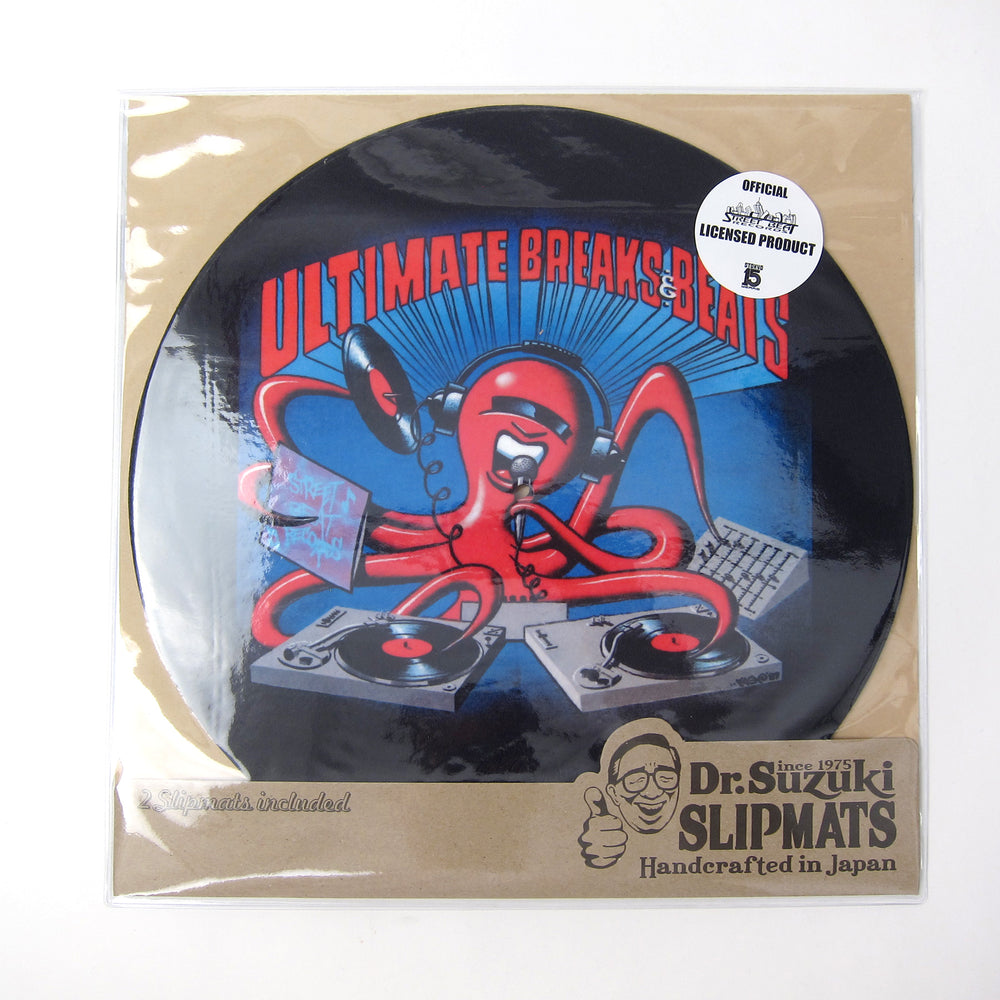 From Dr. Suzuki, the creator of the best selling D-Styles Tablecloth comes these extremely limited edition 12" slipmats sporting graphics from Street Beat Records' iconic Ultimate Breaks & Beats series. Features original Kev Harris (TM7) artwork with UB&B's signature Octopus DJ graphic. Official collab celebrating 15 years of Stokyo. Recommended.