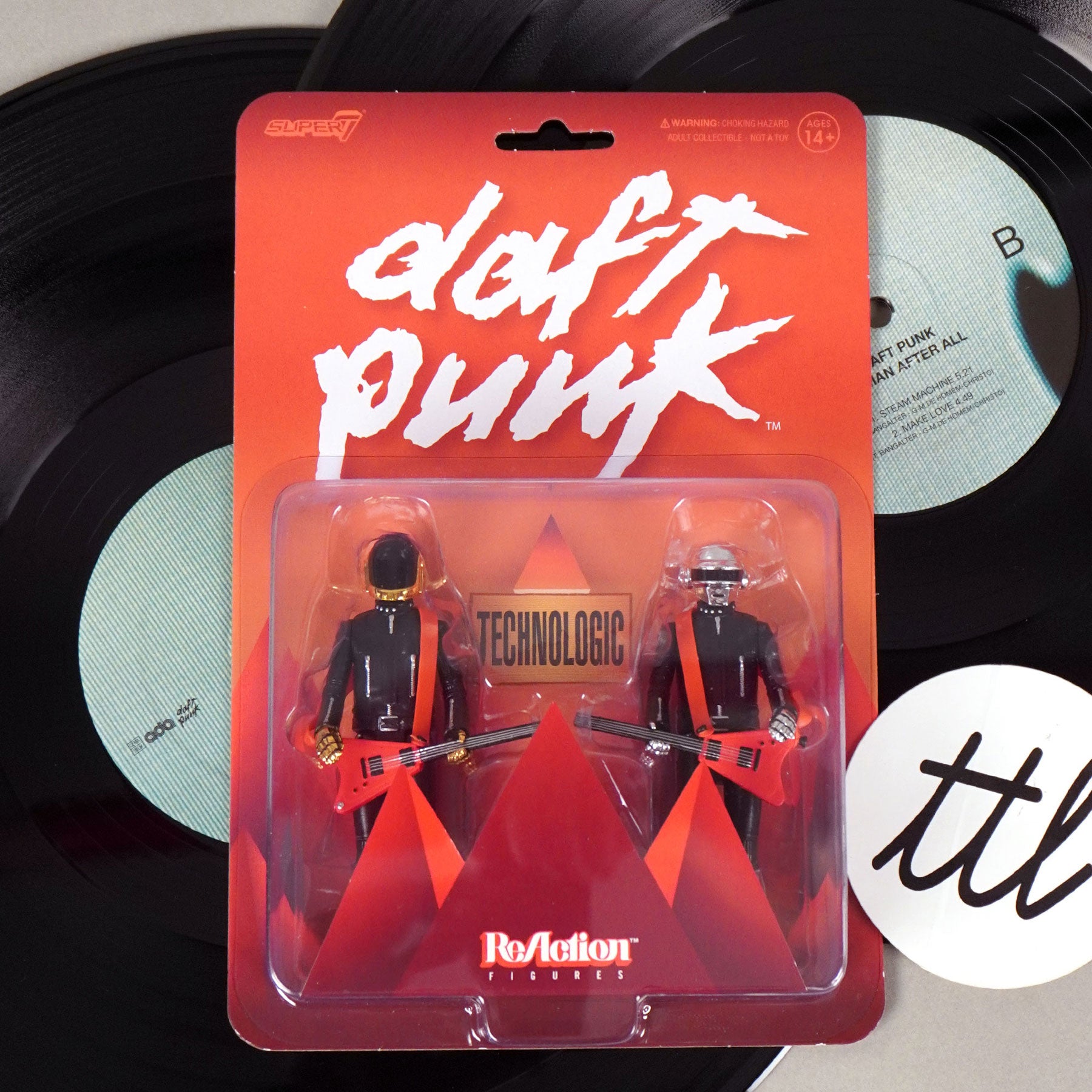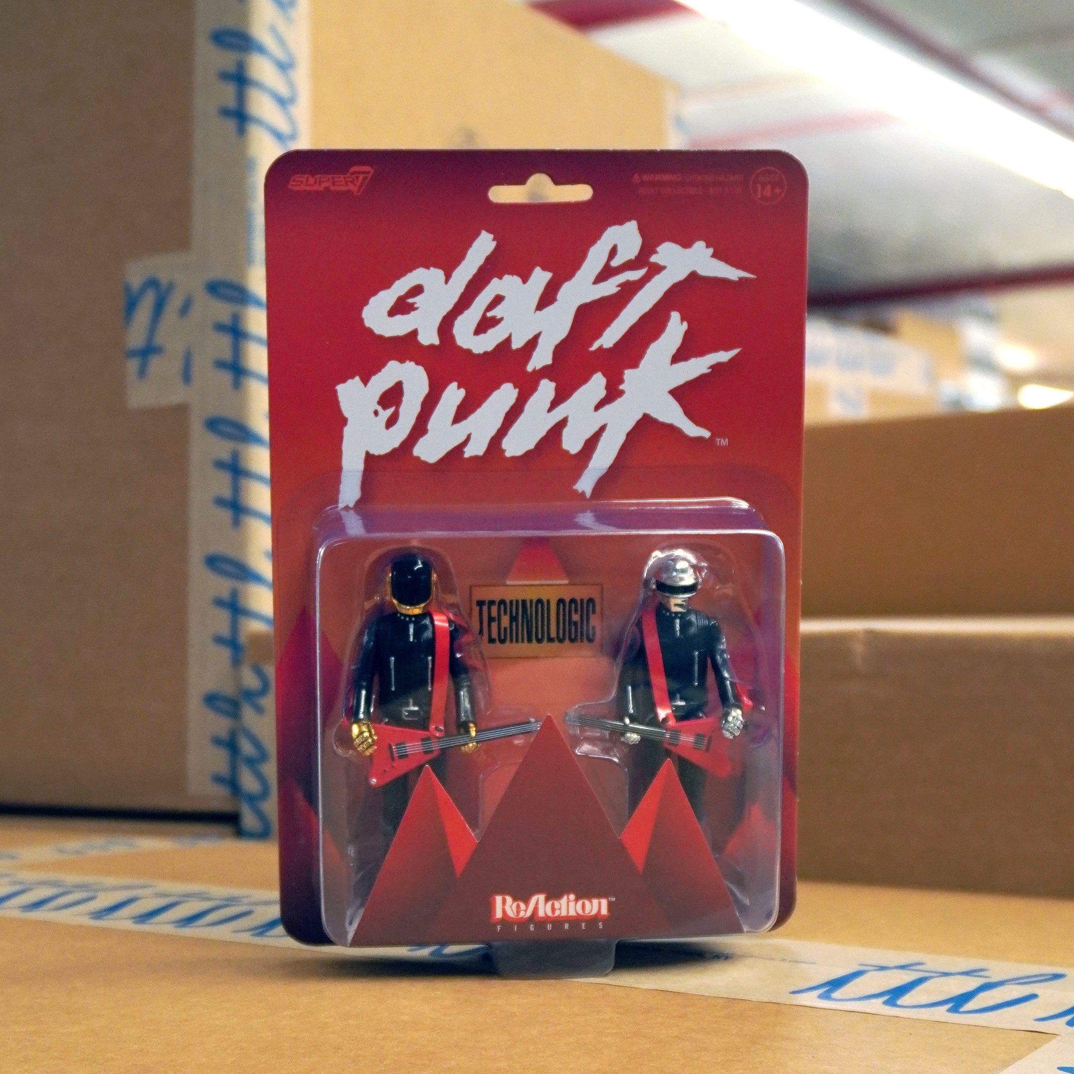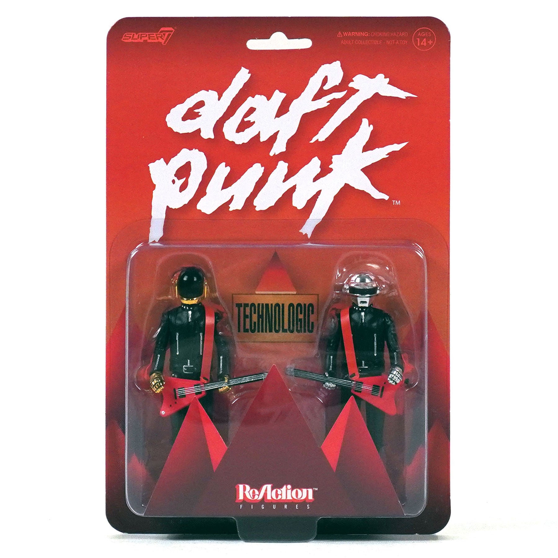 "Bring the beat to life with the ultimate techno-duo — Thomas Bangalter and Guy-Manuel de Homem-Christo, reimagined as action figures straight out of Daft Punk’s 'Technologic' universe. This articulated, 3.75" scale ReAction Figure 2-pack captures the two legends in extraordinary detail. Both figures come with guitar accessories and the Guy-Manuel de Homem-Christo figure has a removable helmet. Packaged on a full-color blister cardback is inspired by the Technologic music video and is perfect for display. Collect it. Pose it. Play it. Repeat." - Super7
