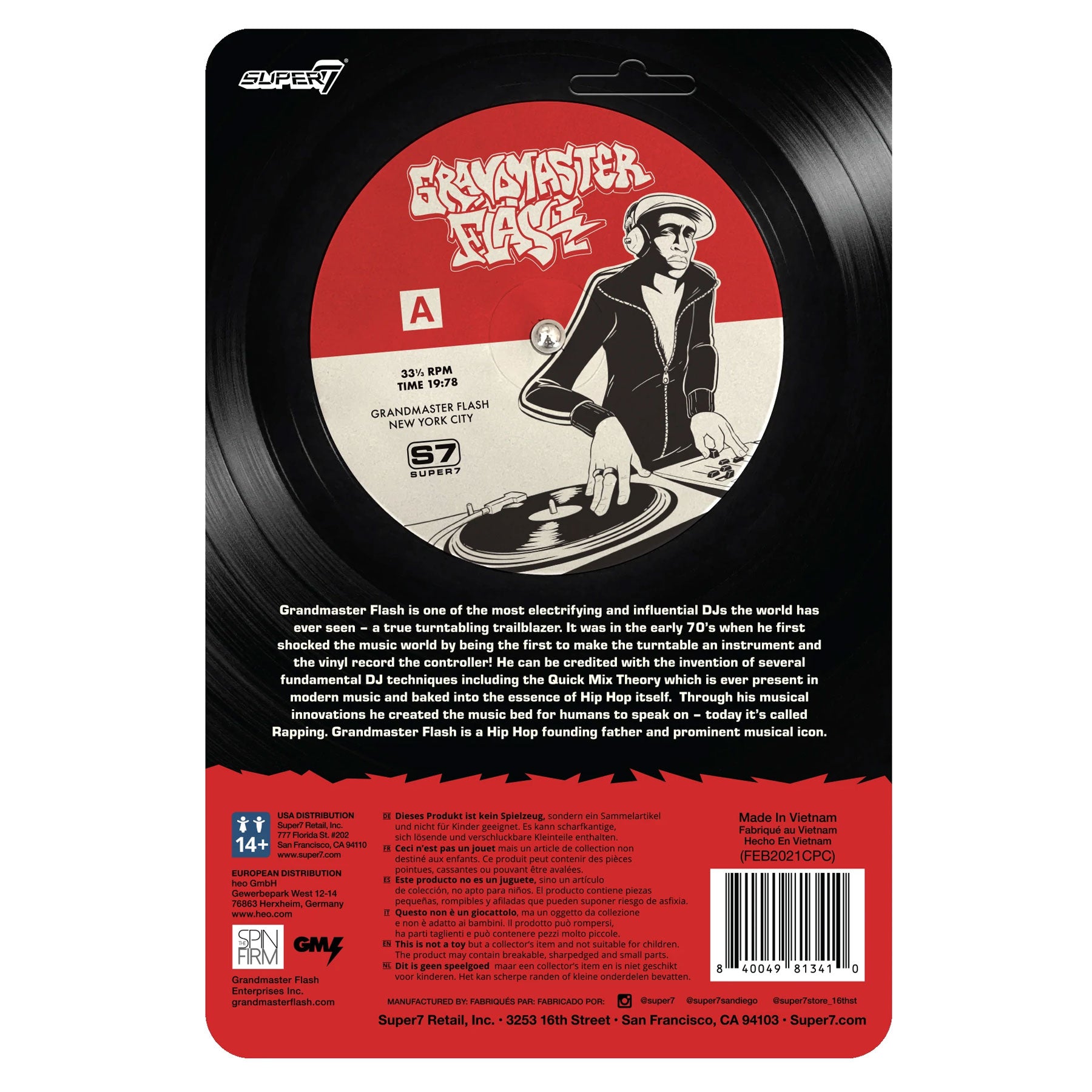 "Make some noise for this Super7 collab with the legendary hip hop pioneer, Rock & Roll Hall of Famer, Polar Music Prize and Grammy Lifetime Achievement Award winner, Grandmaster Flash! The 3.75” articulated ReAction figure of Grandmaster Flash features the groundbreaking DJ in his signature jacket and comes with a turntable accessory. Add the Grandmaster Flash ReAction figure to your lineup of Hip-hop icons!" - Super7