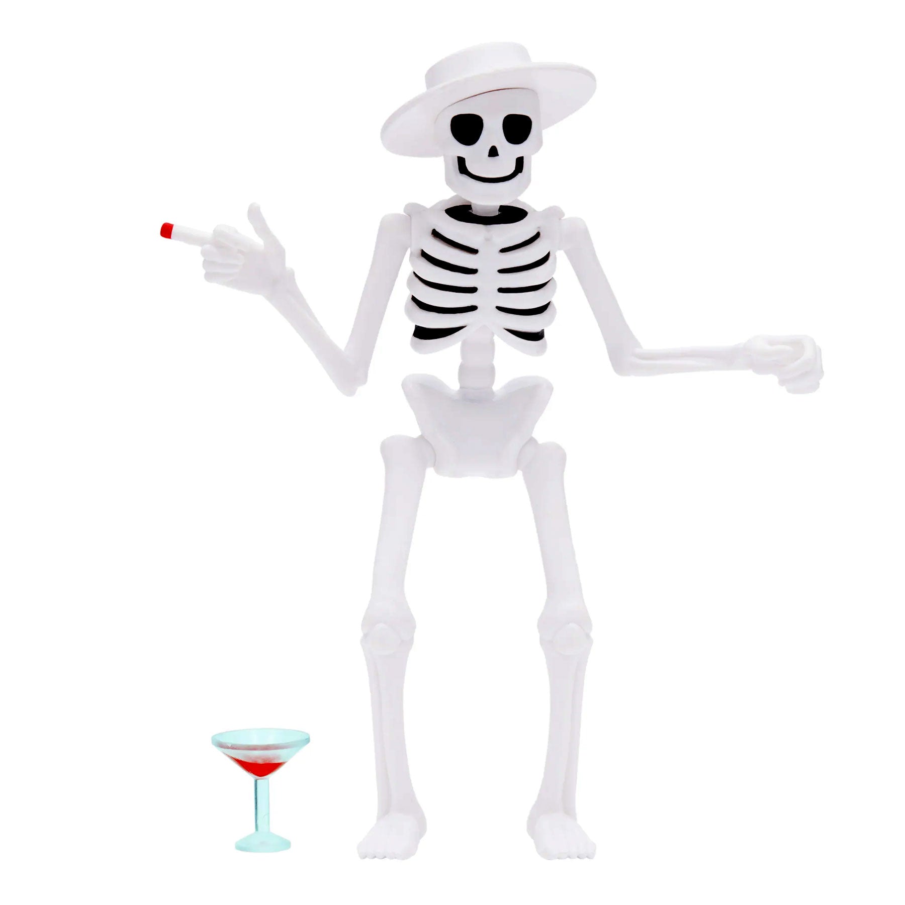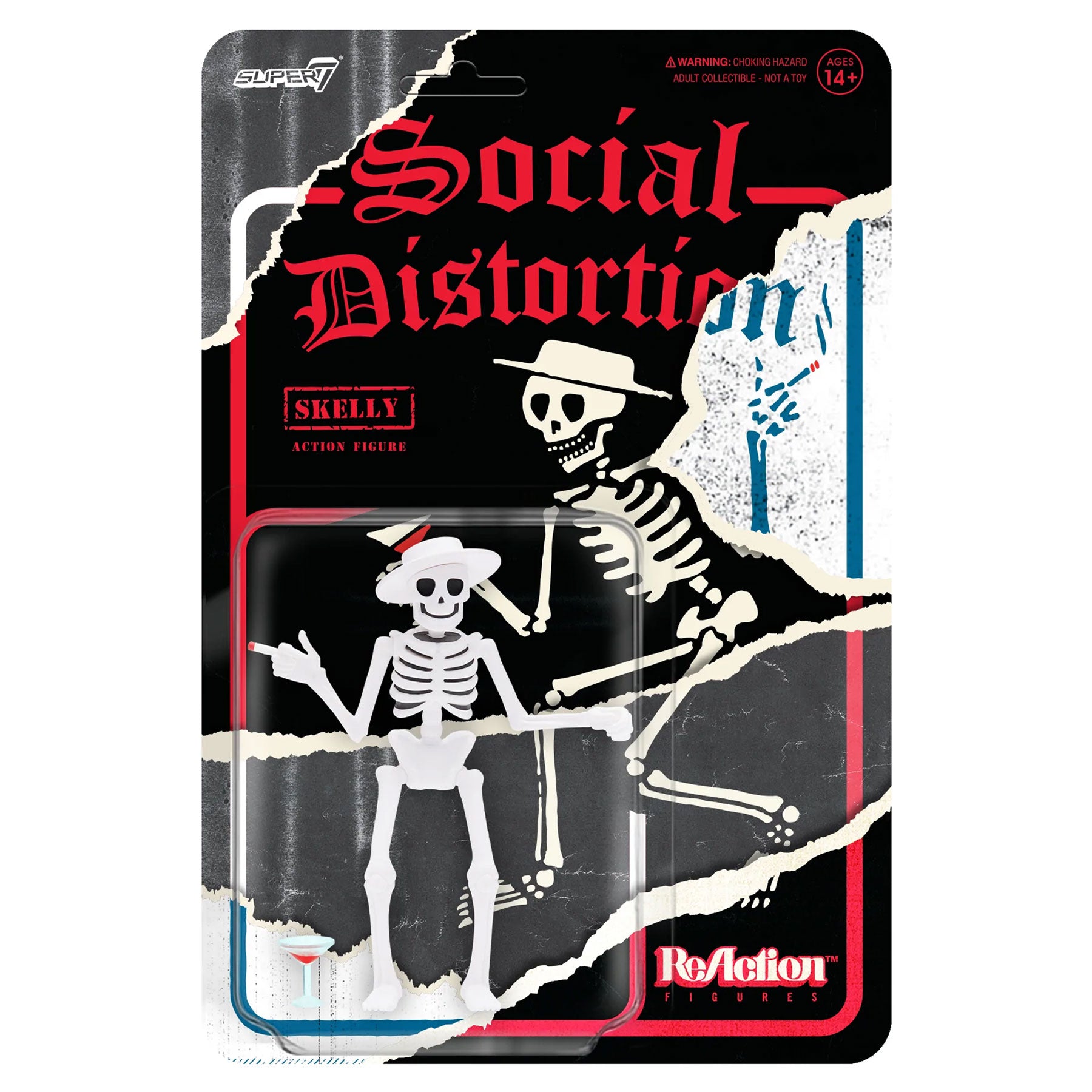 "Join the punk rock party with the iconic mascot of Social Distortion, Skelly! This 3.75” articulated Social Distortion ReAction figure of Skelly features the jaunty skeleton with trademark hat and cigarette as well as martini glass accessory. He’s as timeless as the band itself and the story of your collection won’t be the same without the Social Distortion ReAction figure of Skelly!" - Super7