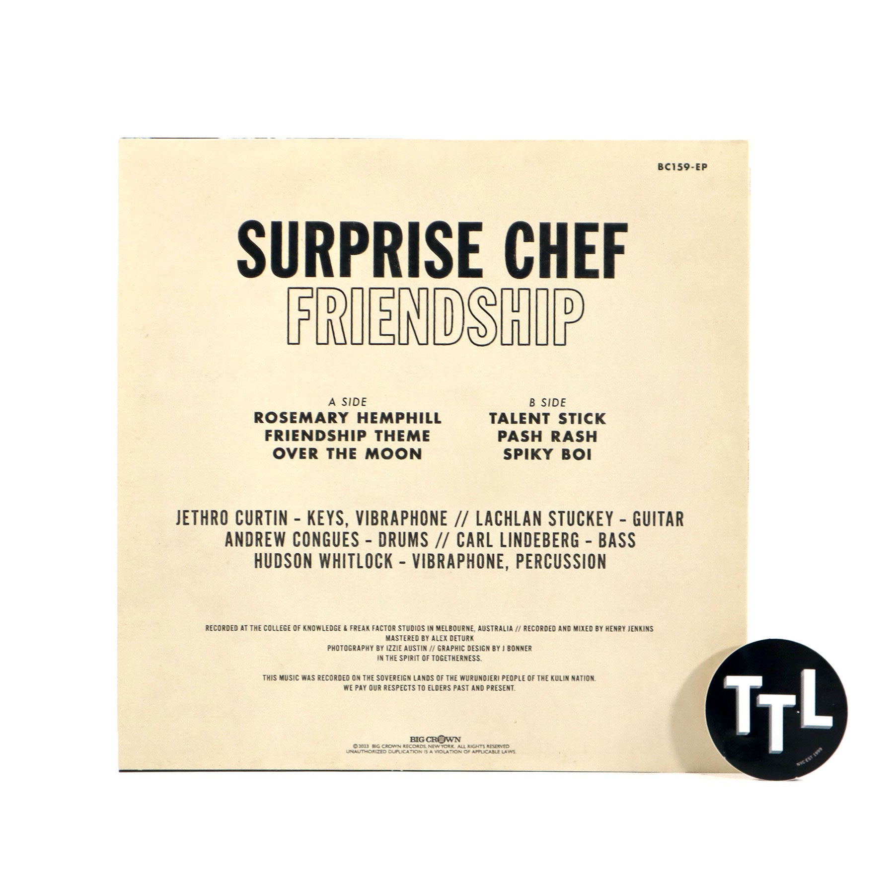 "Since the release of Surprise Chef’s 2022 album, Education & Recreation, they have been touring across the US, Europe, and Australia selling out shows and cementing themselves as a force to be reckoned with. Releasing three albums and a string of successful 7" singles since 2019, their output is nothing short of prolific and they show no signs of slowing down with the announcement of their new Friendship EP. Friendship is a six song 12" EP recorded during the Education & Recreation sessions that stands as 'a humble monument to the most crucial principle of our band: that the love we share for one another is, at all times, the most important thing'. Surprise Chef holed up for a marathon of a recording session and laid down more tracks than would fit on an album. Here now, we dig in the vault from those sessions and share some absolute gems. The EP opens with 'Rosemary Hemphill', a nod to David Axelrod that takes the listener through a myriad of musical changes and moods in proper cinematic soul fashion. 'Friendship Theme' is a bouncy and energetic number with an infectious and driving clavinet topline that is sure to move dancefloors around the globe. 'Over The Moon' is pure mood music that puts Surprise Chef's restraint and tasteful use of space front and center while 'Spiky Boi' is a frantic upbeat number drenched in percussion and keyboards." - Big Crown Records