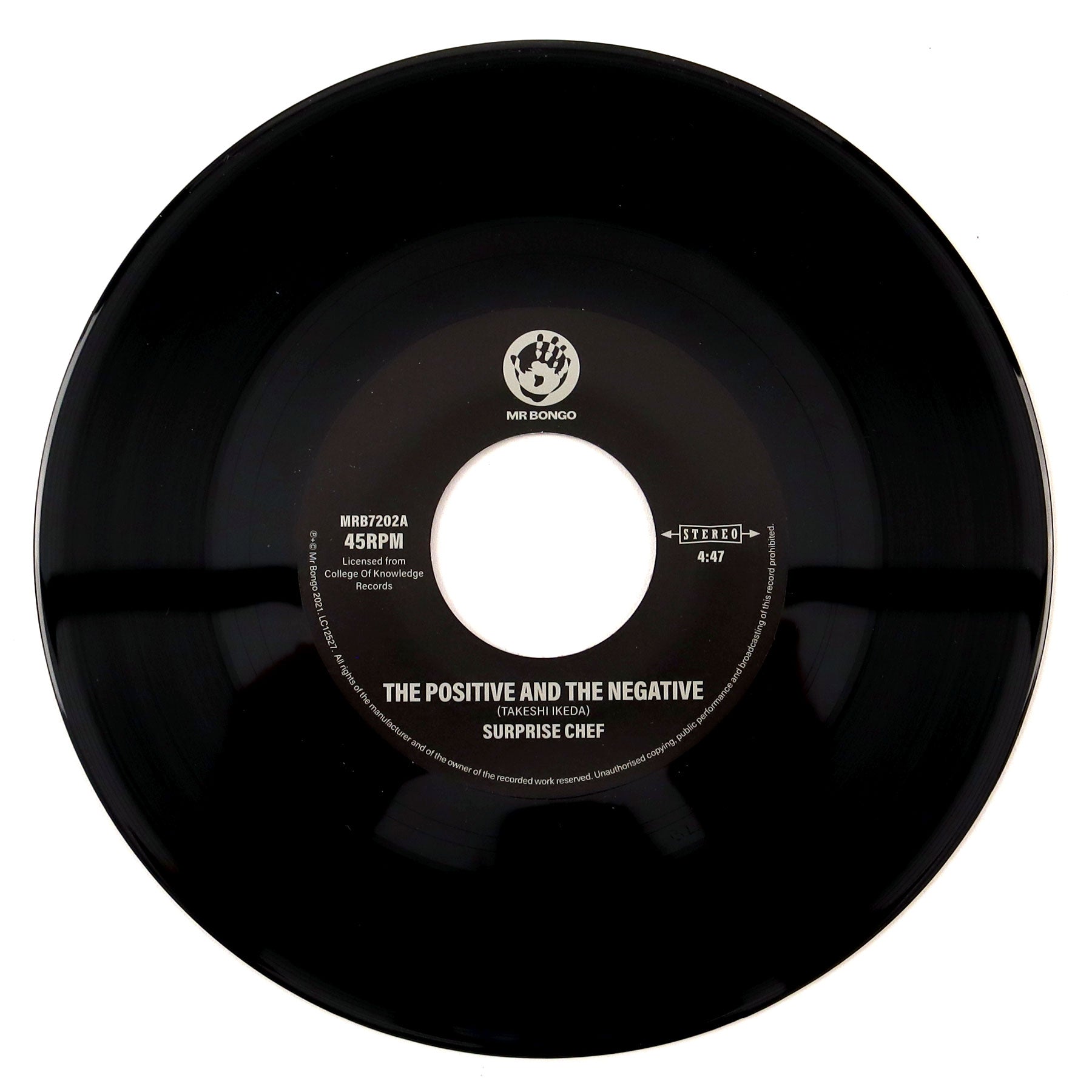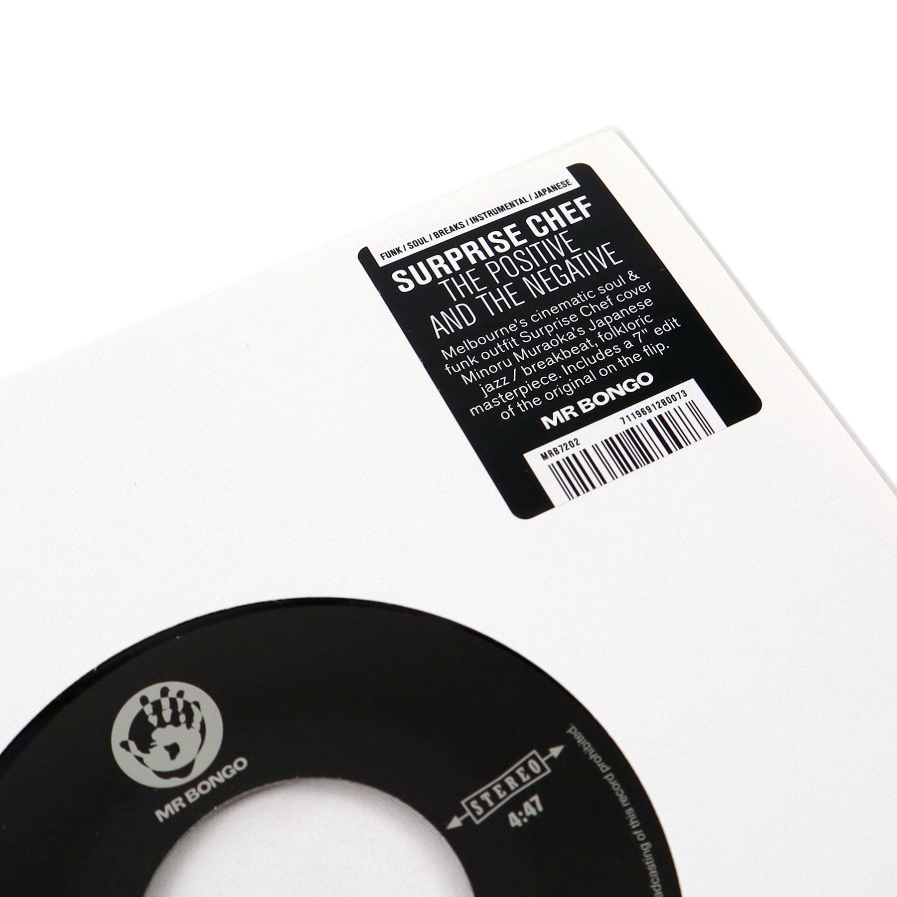"Minoru Muraoka’s 'The Positive and the Negative’ is a firm favourite at Mr Bongo. It sees a master of the shakuhachi, a traditional bamboo Japanese flute, flex his prodigious skill resulting in a unique mix of breakbeat jazz and Japanese folkloric music. 'The Positive and the Negative’ featured on the 1970 Bamboo album, which Mr Bongo reissued in 2019. The record’s cult status had us thinking how could we pay further homage to a sublime track such as this. The opportunity came to us in an email from Melbourne’s Surprise Chef with a link to the fabulous reinterpretation of the track which they had just recorded. Forged in their signature sound, 'The Chef' have made 'The Positive and the Negative' their own whilst simultaneously treating the original with utmost respect. The shakuhachi and koto have been replaced by synths and guitars, but the breakbeat psychedelic vein flows richly through both instruments The 7" vinyl format was the right fit for this release, so the original Minoru Muraoka recording which clocks in over nine minutes has been edited into a 7” version to accompany Surprise Chef’s new take." - Mr Bongo