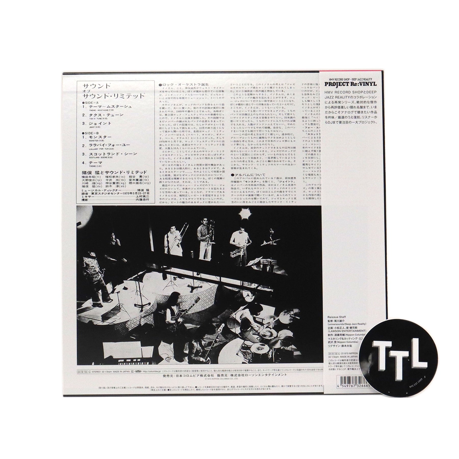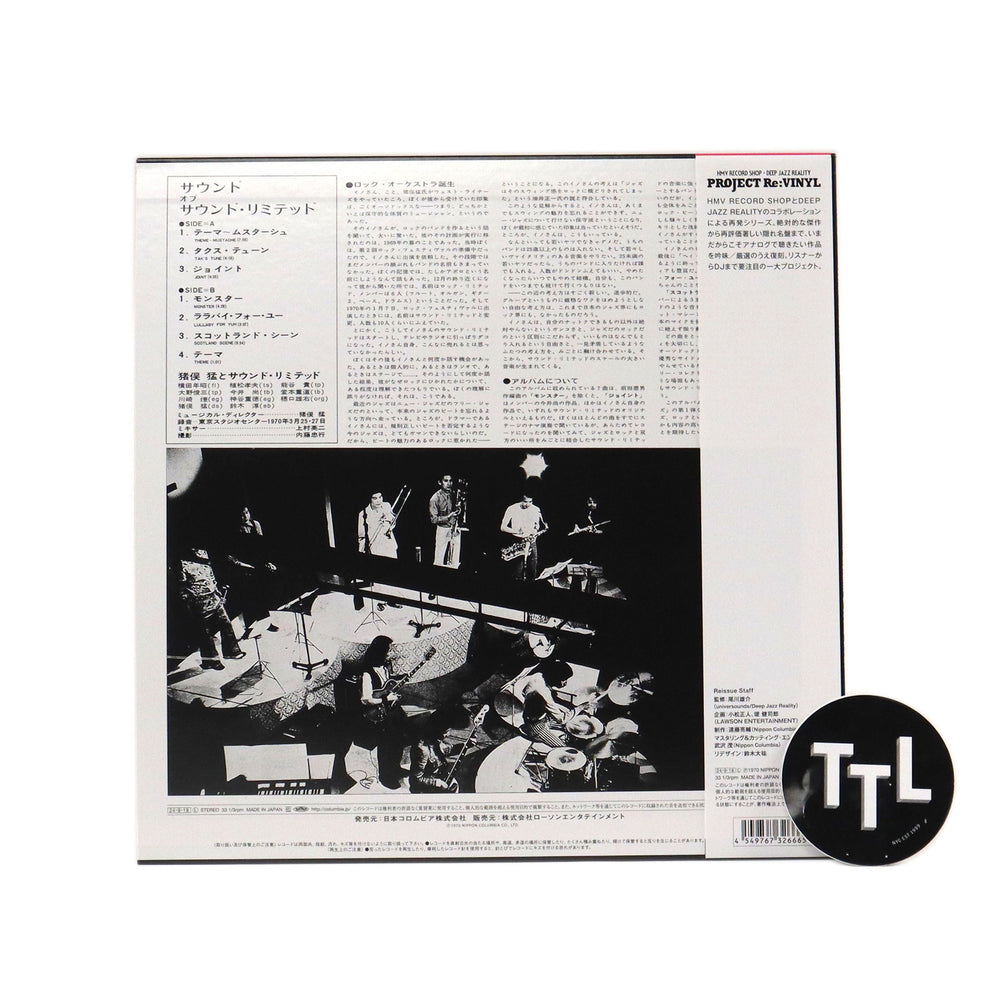 "The drums of fire scorch the age. With his young and talented Sound Limited, Takeshi Inomata heralds the arrival of the golden age of jazz rock in high spirits. Drummer Takeshi Inomata, who led the Japanese jazz scene with his precise stick work and musicality with an eye on the times, formed Sound Limited at the end of the 1960s, influenced by the brass rock music that was flourishing at the time. He said, 'I wanted to fuse jazz and rock and bring together young musicians to play music with vitality. I want this group to be a group with a large scale that is not confined to the small frame of modern jazz,'' he said, launching a new axis. Their first album, The Sound of Sound Limited (1970), became their masterpiece. It is a masterpiece that is full of energy and enthusiasm throughout the album, starting with 'Theme~Mustache,' which has become one of the most beloved and iconic songs of the band." - Nippon Columbia