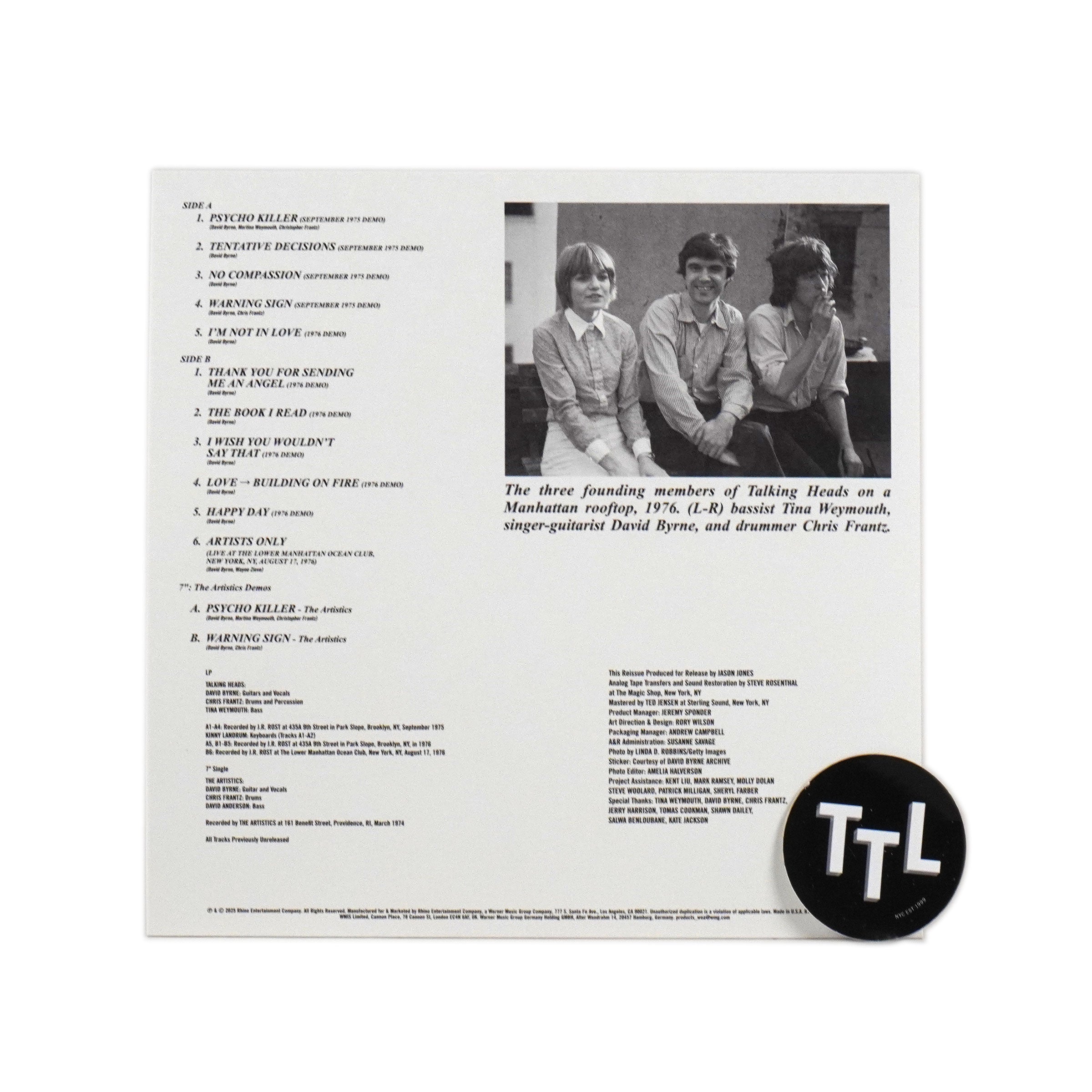 "Talking Heads members Chris Frantz and David Byrne met as students at Rhode Island School of Design, and made music in a college band called The Artistics. In spring semester 1974, the band gathered in Frantz’s Benefit Street apartment to record a demo tape. The cassette featured tracks soon to be classics in the Talking Heads discography: 'Warning Sign' and 'Psycho Killer.' This collection includes this newly discovered material alongside an additional eleven demo and live tracks recorded by the original trio lineup of the band (Bassist Tina Weymouth alongside Frantz and Byrne) in 1975 and 1976." - Rhino