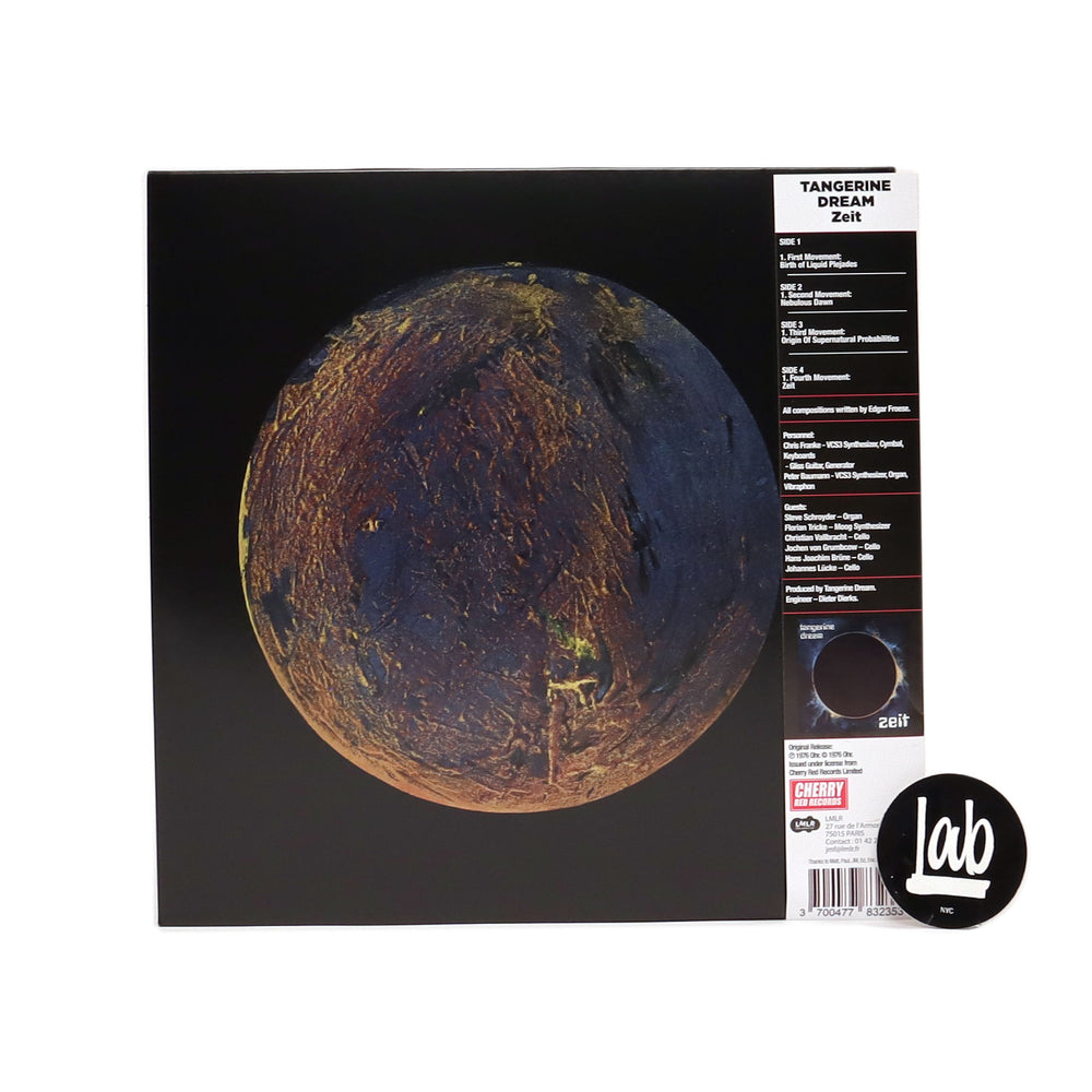 Originally released in 1972, Zeit would be Tangerine Dream's third full length album, and the first to feature the main trio of Edgar Froese, Peter Baumann, and Chris Fanke. The German electronic group pioneered the entire dark ambient genre with this work, whose title translates to "time," and was based on the philosophy that "time was in fact motionless and only existed in our own minds." Also worth noting is that Popol Vuh's Florian Fricke plays Moog synthesizer on the first track to connect the krautrock dots. This 2021 pressing comes on one transparent blue colored LP and one clear LP, complete with gatefold sleeve, and original cover artwork featuring a solar eclipse. Limited one-time pressing of 1,000, recommended.