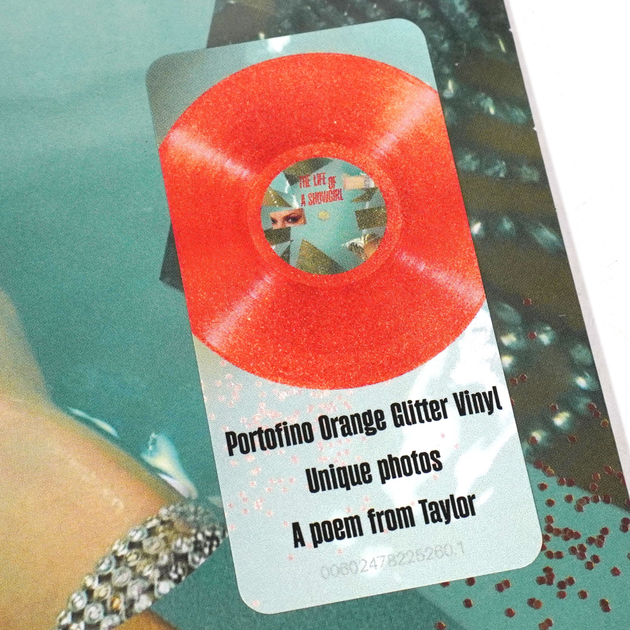 "Taylor Swift's 12th studio album, The Life of a Showgirl, will be released worldwide October 3, 2025. The LP includes 12 songs, Portofino Orange Glitter Vinyl, Double gatefold jacket, unique front and back cover, and never-before-seen photos and album lyrics." - Taylor Swift