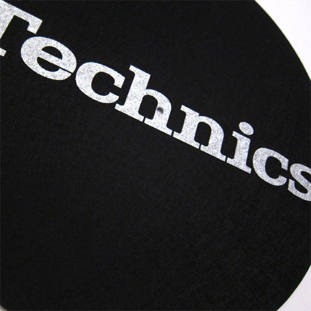Official Technics slipmats! This is the classic Technics logo style, printed in silver on black. Medium weight, felt construction - suitable for all types of DJing.