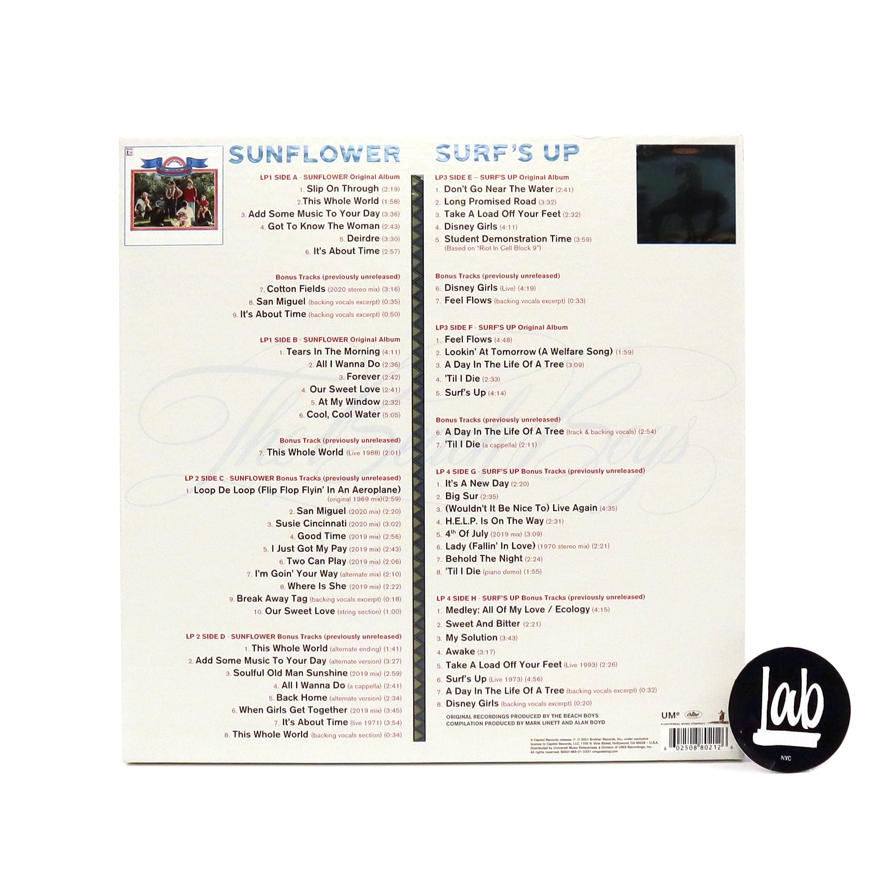 "The Beach Boys Feel Flows collection is based on the landmark 1970/1971 albums Sunflower and Surf’s Up. This 4LP features remastered versions of the original albums and has 64 tracks including 44 previously unreleased tracks, alternate versions, alternate mixes and vocals. Available on black vinyl." - Capitol