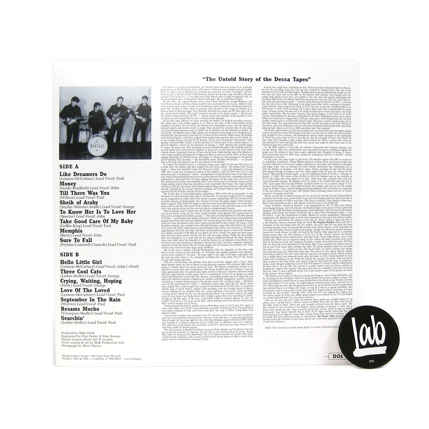 Ever wonder what the Beatles demo tape sounded like? Well here's your chance, on clear vinyl no less! The Decca Tapes contains the full album that was consequently rejected by the label dudes at Decca (easily one of the biggest fumbles in rock & roll history) and offers a rare glimpse at the early Beatles' sound pre-blowup. Plenty of standards on here, but you also get three Lennon-McCartney originals. 15 tracks pressed on heavyweight clear vinyl housed in die-cut sleeve with liner notes.