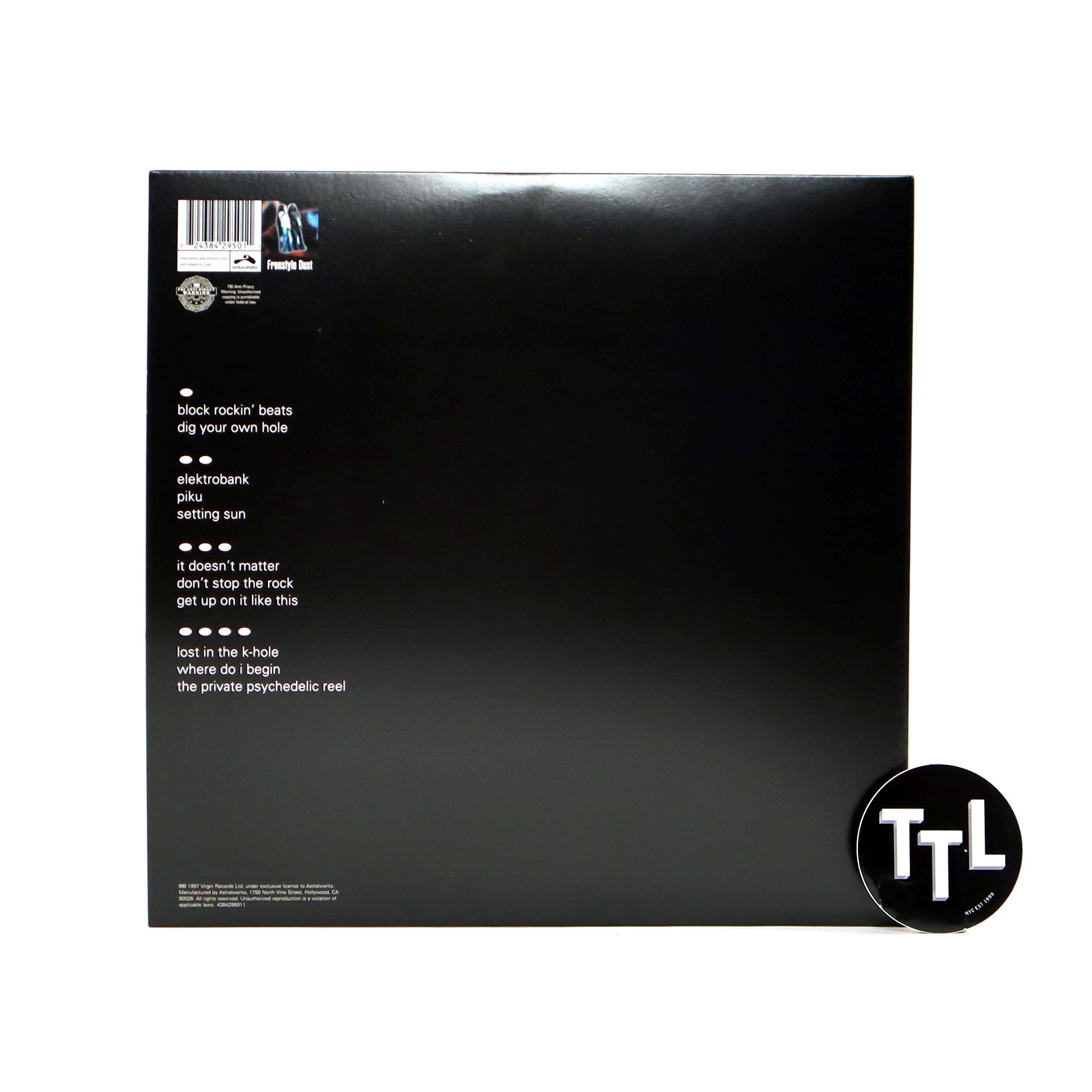 Sophomore studio album from Manchester's The Chemical Brothers. Dig Your Own Hole was originally recorded between 1995 and 1997, and was the duo's first UK number one album. After the success of their debut, Exit Planet Dust, Tom Rowlands and Ed Simons further developed their psychedelic breakbeat sound. Using more rock elements, they were able to reach a larger audience. It's electronic music that rocks hard with just enough style and innovation thrown into the mix. Includes the songs: "Block Rockin' Beats," "Elektrobank," and "Don't Stop the Rock." Eleven tracks in all.