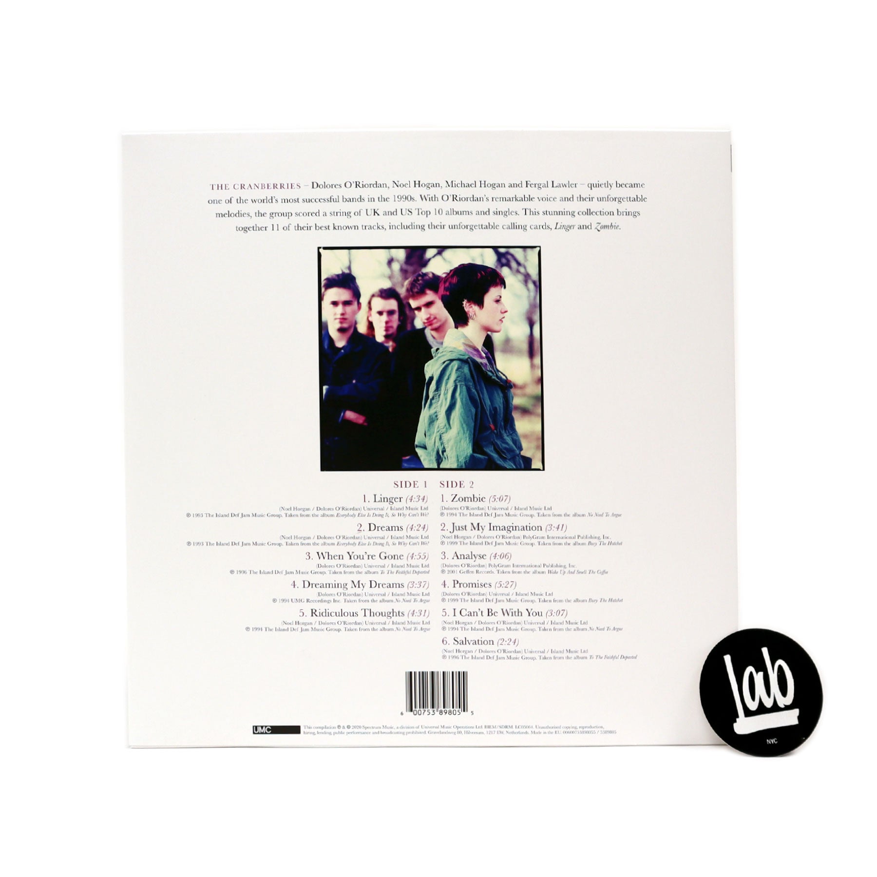 "The Cranberries - Dolores O'Riordan, Noel Hogan, Michael Hogan and Fergal Lawler - quietly became one of the world's most successful bands in the 1990s. With O'Riordan's remarkable voice and their unforgettable melodies, the group scored a string of UK and US Top 10 albums and singles. This stunning collection brings together 11 of their best-known tracks, including their unforgettable calling cards, 'Linger' and 'Zombie'." - Spectrum Audio UK
