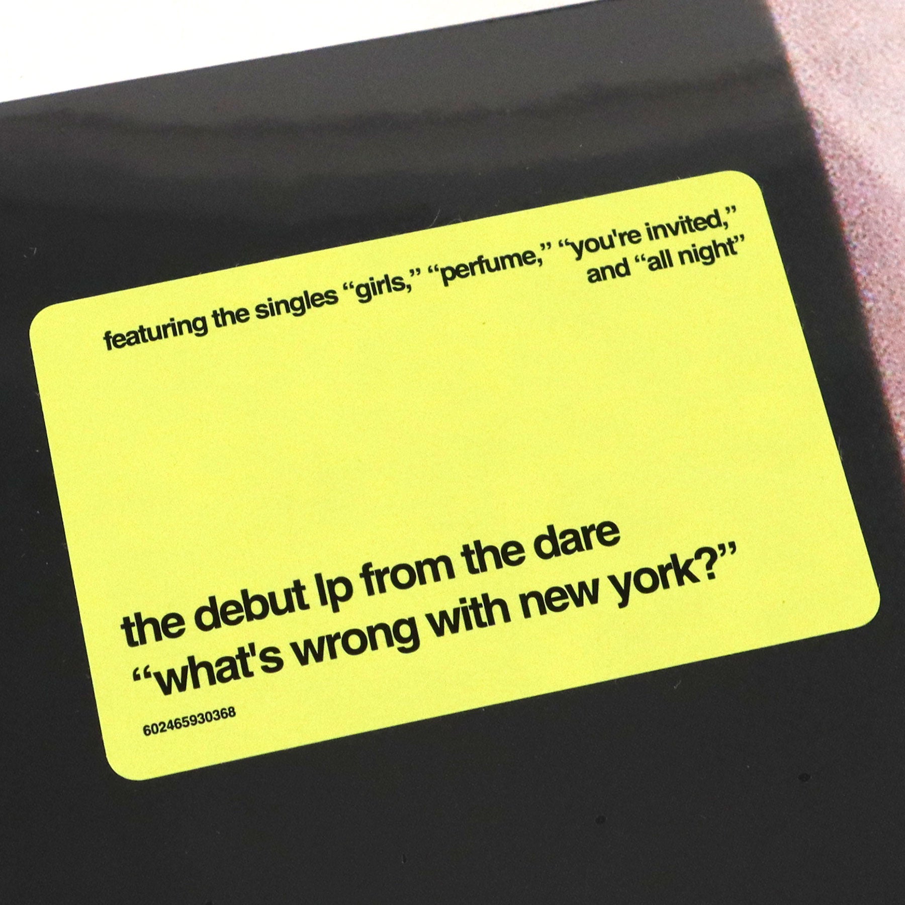 "What’s Wrong With New York? is the long awaited and highly anticipated debut album from The Dare on Republic Records. Recorded between The Dare’s home and studio in New York, it features songwriting and production collabs with Dylan Brady (100 gecs), Emile Haynie, Romil Hemnani (Brockhampton), Chris Greatti, Isaac Eiger of Strange Ranger and more. The Dare is the solo project of vocalist, songwriter and producer Harrison Patrick Smith. Bursting onto the scene with the ubiquitous 'Girls,' his much lauded The Sex EP drew widespread praise from critics and artists alike. His explosive live shows have sold out across North America and Europe, and his legendary DJ sets, honed at his signature downtown Manhattan party Freakquencies, have soundtracked parties for Gucci, Celine and more." - Republic Records