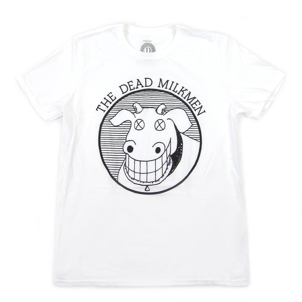 Rodney Anonymous, Joe Jack Talcum, Dave Blood, and Dean Clean formed The Dead Milkmen in 1983. The Philadelphia punk band's smiling cow head logo, which reflects the sardonic humor found in its music well, is printed on a 100% cotton tee. Also available in black.
