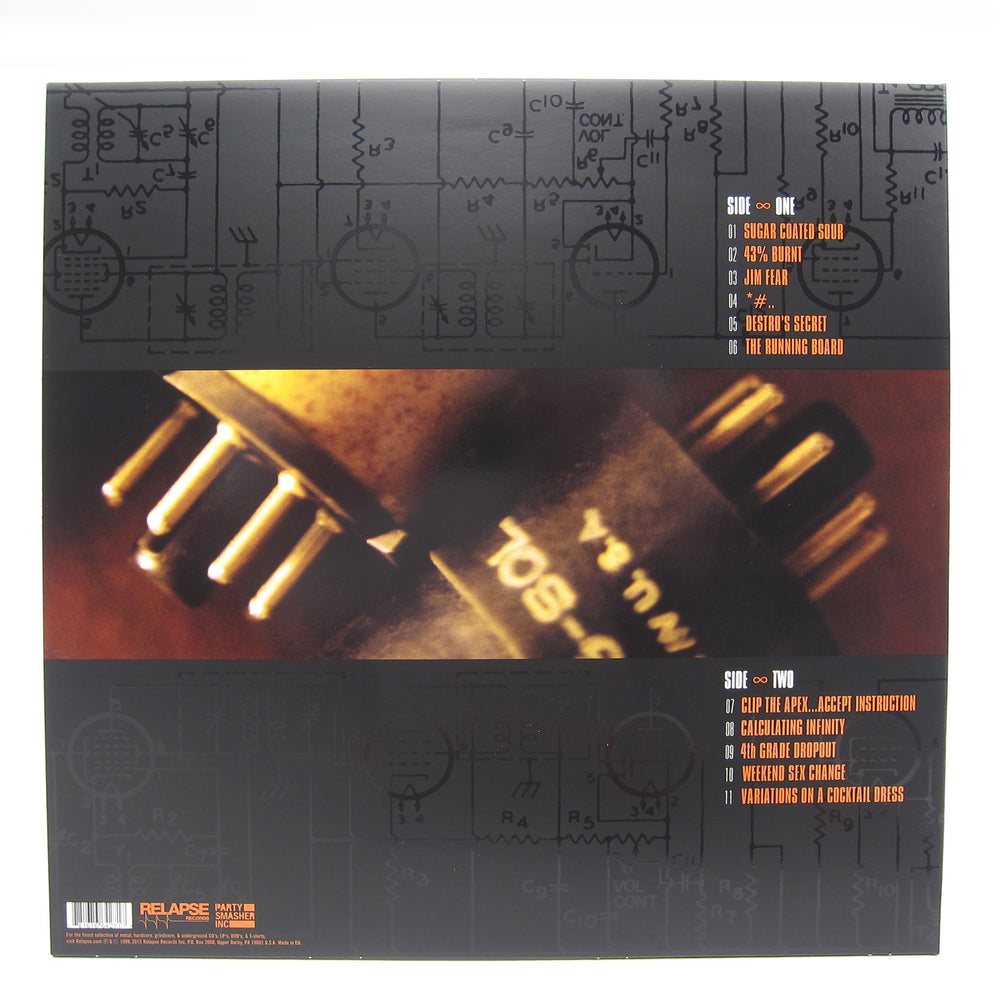 Debut studio album from Morris Plains, New Jersey's The Dillinger Escape Plan. Originally recorded in 1999, Calculating Infinity is considered a landmark of avant-garde metal. Standouts include "Jim Fear," "Destro's Secret," and "4th Grade Dropout." Eleven tracks in all. This is the 2018 fifth pressing on orange krush colored vinyl with black, halloween orange, grey splatter. Only 1,000 pressed in this colorway.
