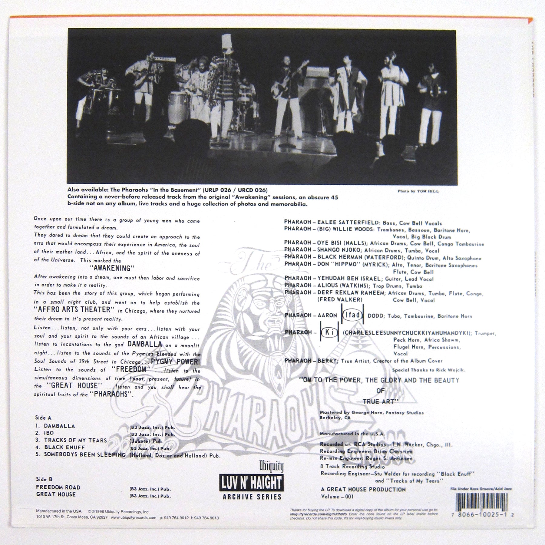 Must-have reissue for the jazz funk heads. The Pharaohs' Awakening has been a sought-after piece for diggers for some time now. In fact, Luv N' Haight reissued it back in 1996 and 2012 which only heightened its popularity. Now Ubiquity is putting Awakening back in print with fully remastered sound for even more bump in the trunk. Here's your chance to make up for sleeping on it the first (and second) time. From the stomping rhythms of "Ibo," to the driving beats and free form horns on "Damballa," and the extra funky "Black Enuff," this album delivers through and through. If you have more than a passing interest in deep, afro-centric jazz that rooted in heavy funk grooves, you owe it to yourself to cop this. Seven tracks total, housed in full pic sleeve. Recommended.