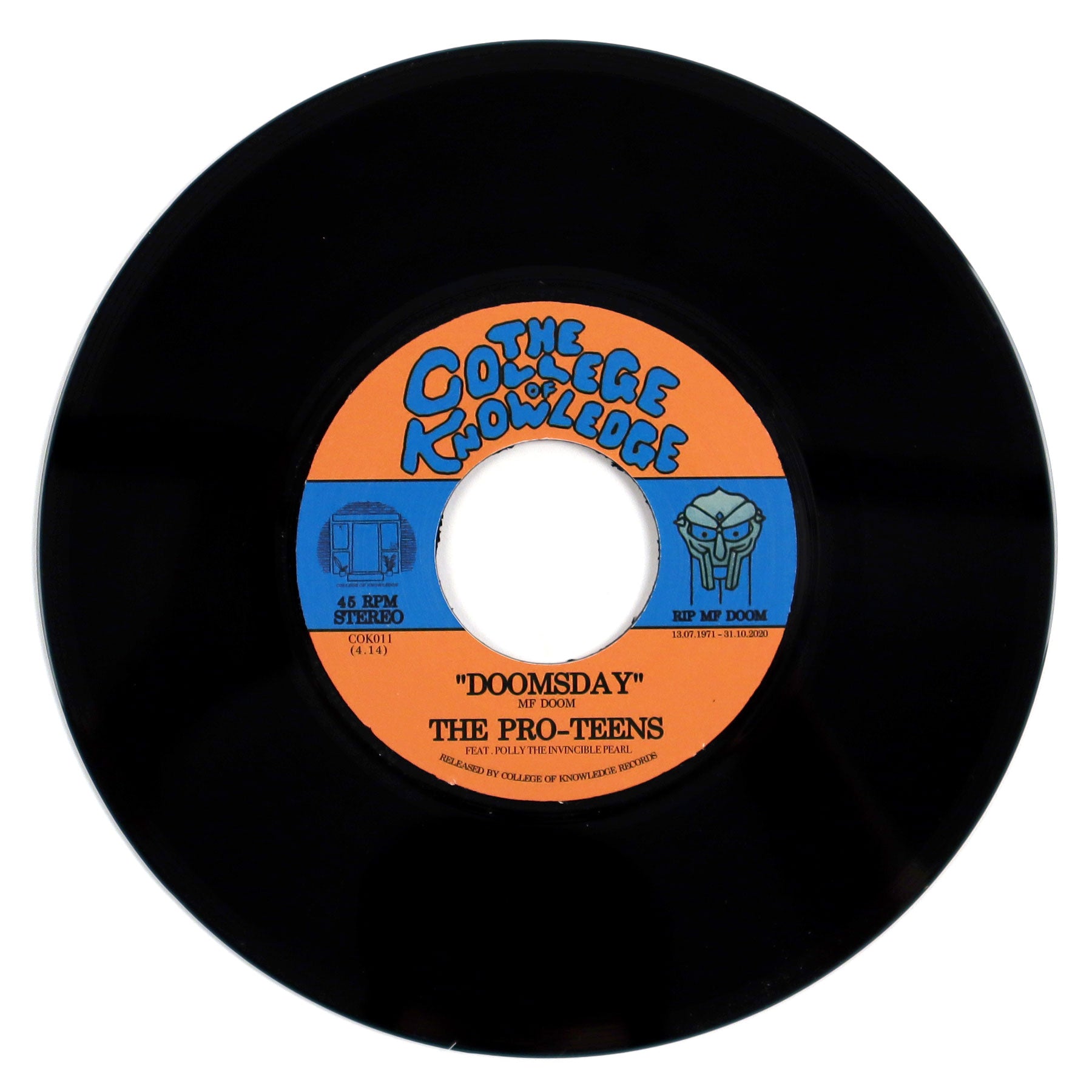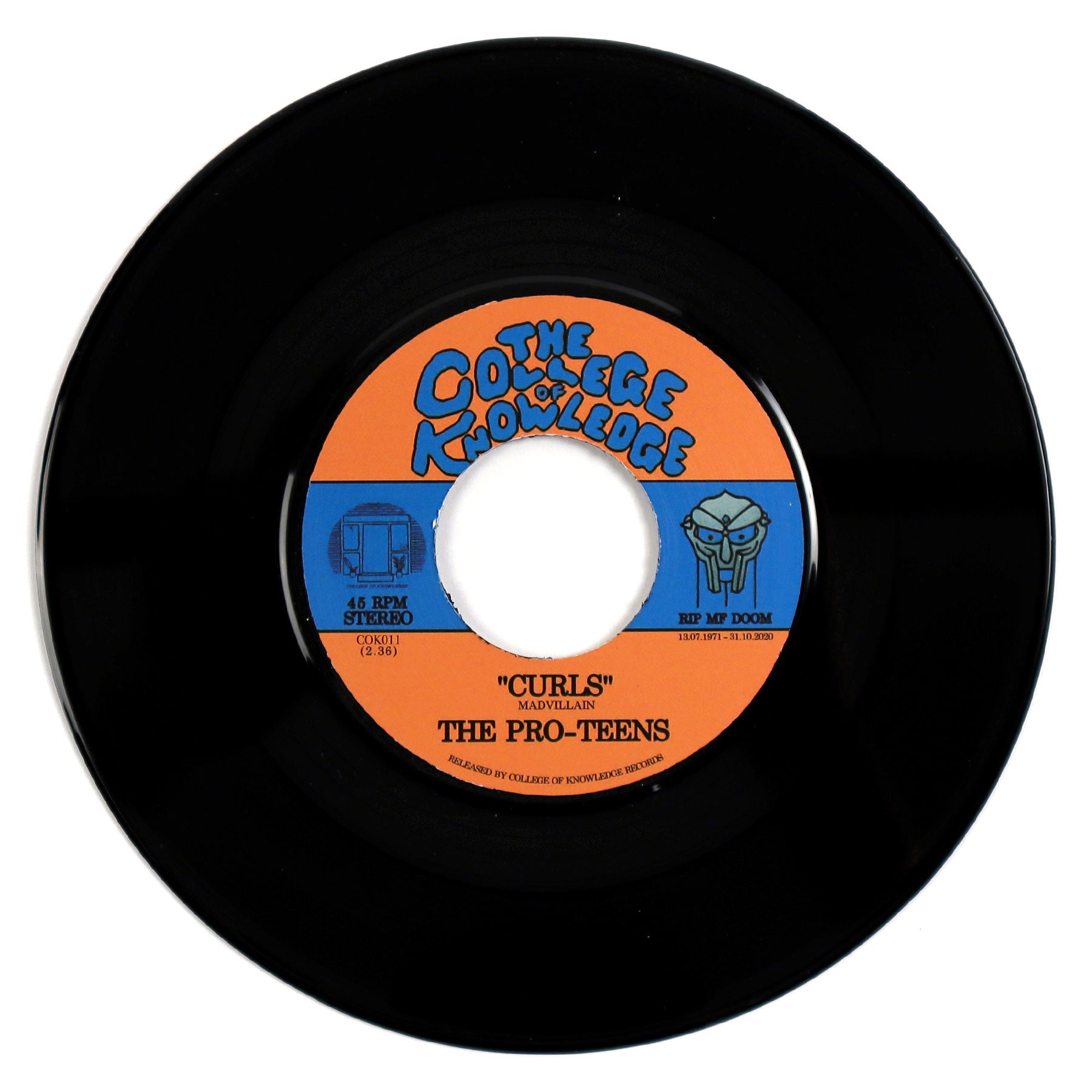 "Melbourne (Naarm)’s enigmatic instrumental soul group The Pro-Teens emerge from mystery once again to pay tribute to the late great MF DOOM, reimagining two iconic cuts from the deep catalogue of the infamous Metal Fingered Villain. Doomsday, the title track from MF DOOM’s seminal debut LP Operation: Doomsday, is reimagined as a floaty, coasting synthesizer-topped funk burner. Featuring vocalist ‘Polly The Invincible Pearl’ replicating Pebbles The Invisible Girl’s iconic Sade-inspired hook, The Pro-Teens warp DOOM’s instantly recognisable beat into a tasteful groover in the spirit of 70s soul. Curls is taken from MF DOOM’s timeless 2004 collaboration with Madlib, Madvillainy. Widely heralded as one of the greatest hip hop albums of all time, The Pro-Teens felt that it was crucial to pay homage to this shining gem in MF DOOM’s storied catalogue. In their version, the original Brazilian sample is reconstructed with marimba, two guitars, angular organ tones and The Pro-Teens trademark boom-bap drum feels. The track fades out on a completely original addition to the piece; The Pro-Teens insert an outro that sounds like it could be an outtake or unused sample from Madlib and DOOM’s original effort." - College Of Knowledge