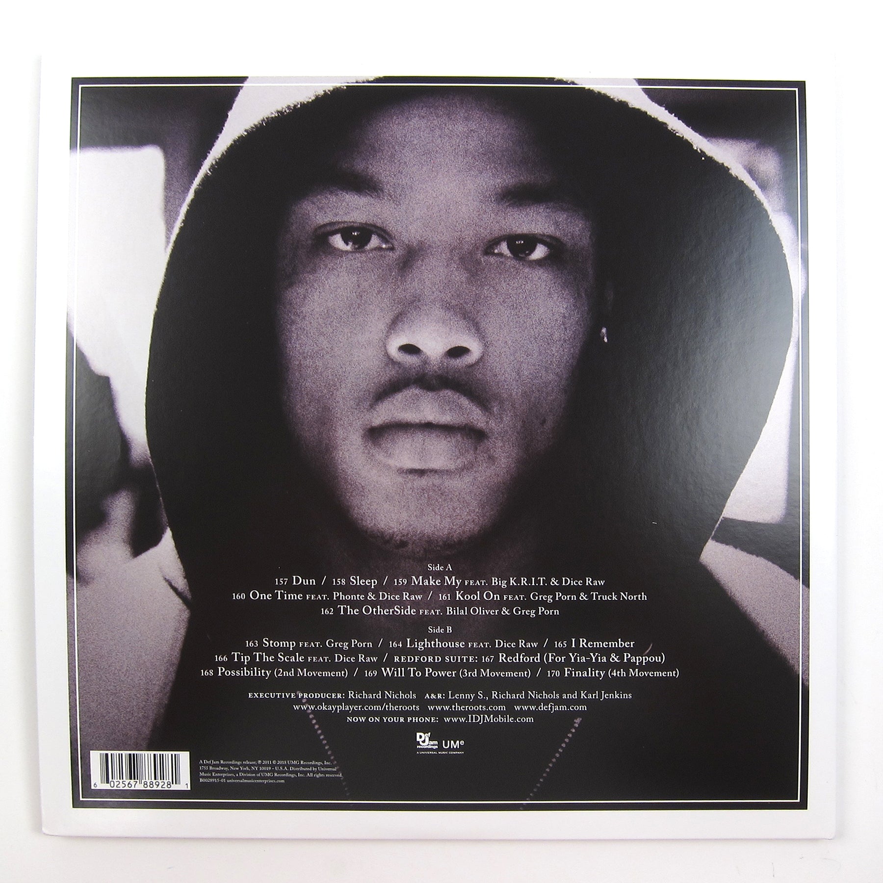 THE LEGENDARY ROOTS CREW. Meet Redford Stephens, a fictional character who meets a tragic end to his life in the opening seconds of Undun. Black Thought and guests tell a poignant story of the circumstances and choices that lead to his demise over neo soul, funk, & indie-influenced production (handled mostly by QuestLove), and the record ends with a gorgeous 4-part suite, which starts with Sufjan Stevens's "Redford (For Yia-Yia & Pappou)." The central theme is heavy & troubled, and the instrumentals, layered with lush piano & other live-band elements, are perfectly tailored to capturing the mood. What's refreshing is how the narrative avoids popular rap music tropes; Stephens is in the drug game, but rather than glamorizing the lifestyle, Undun unravels a tale of a man ("...is based on a combination of maybe four to five people that we know in Philadelphia.") that meets an untimely death after going through an existential crisis. Tracks to check out: "Sleep," "Make My," "The OtherSide," and "Tip the Scale." Big K.R.I.T., Dice Raw, Phonte, Greg Porn, and Bilal make guest appearances.