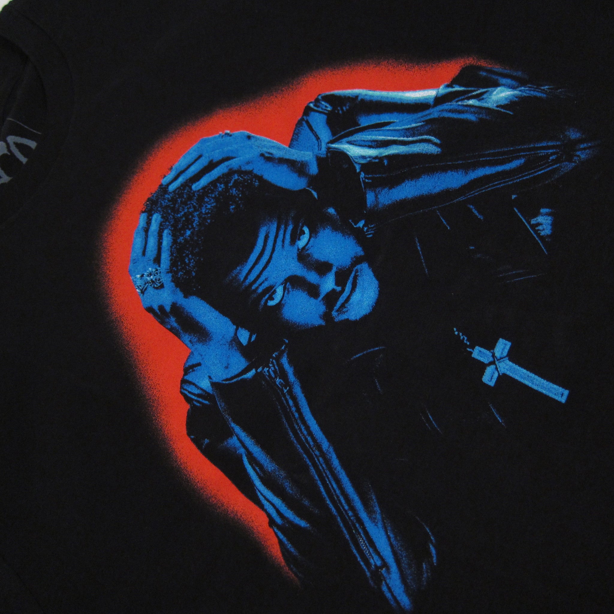 • Cover shot from The Weeknd's third album gets the shirt treatment. Features the Nabil Elderkin's photograph of Abel (sans hair) on the front with small "XO" logo hit below neck. 100% cotton, standard fit.