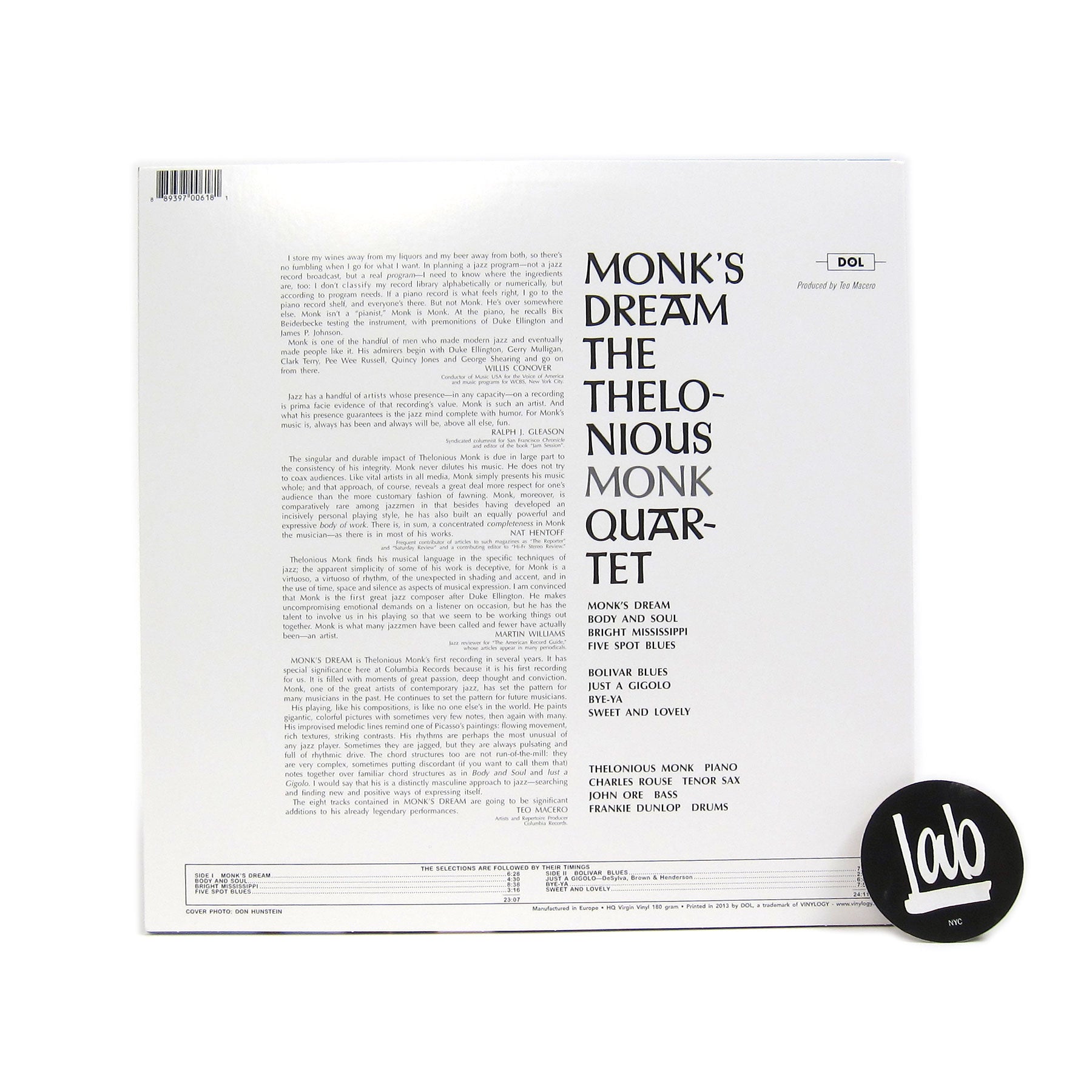 • "Thelonious Monk's first LP for Columbia, and which became his best-selling album ever. It features the pianist/composer performing a combination of his own tunes and his favorite standards, which he made his own. The historical import, musical genius, and timeless artistry of Monk's Dream can be best appreciated by first placing the record in the context of its era. In short, Thelonious Monk's joyful Columbia Records debut triggered a domino effect of mainstream attention, best-selling success, and unstinting respect that led him to become one of only six jazz musicians to ever grace the cover of Time-then America's most widely read weekly magazine. He is backed here by his classic quartet featuring Charlie Rouse on tenor sax, John Ore on bass, and Frankie Dunlop on drums." - Columbia