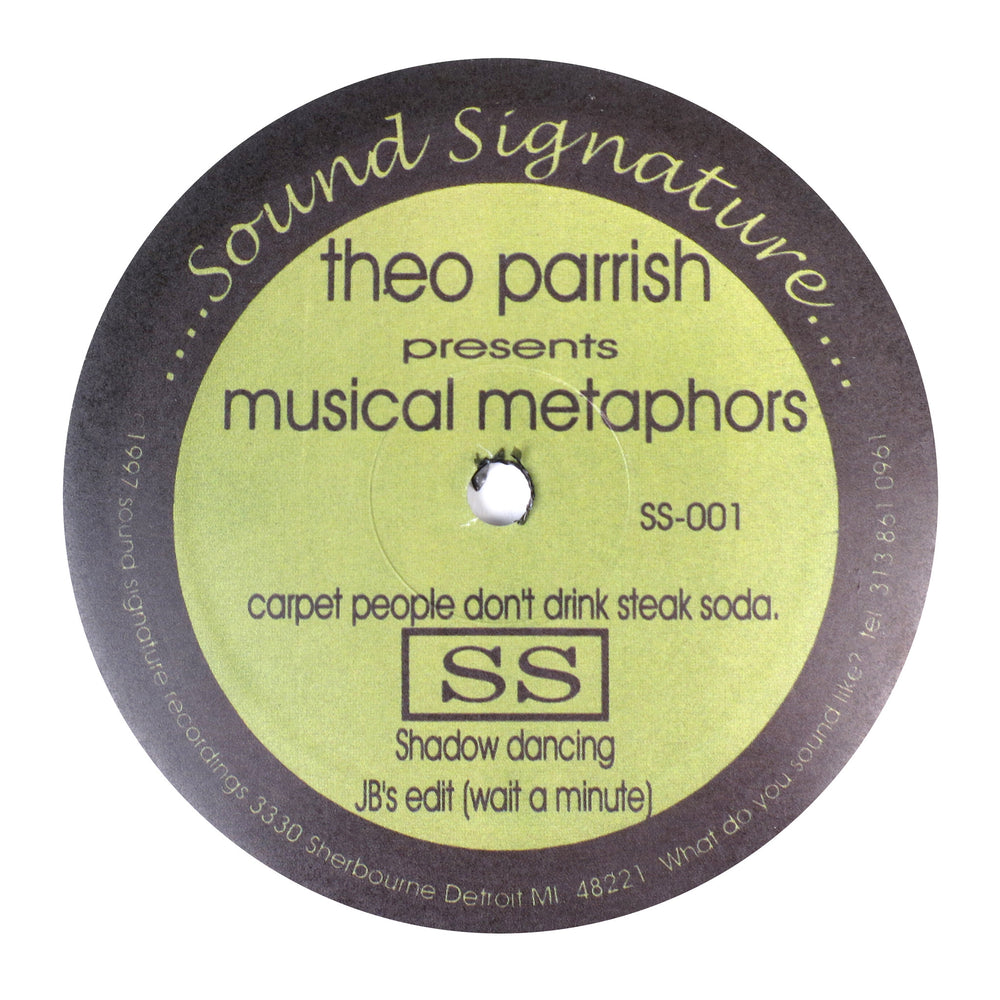 Debut release on Theo's inimitable Sound Signature imprint reissued! Originally released in 1997, The first release on Theo Parrish’s own Sound Signature label was one of the most shocking and unprecedented releases in “dance music” at the time. Possessed of one of the greatest song titles ever, “Carpet People Don’t Drink Steak Soda” is as tight and coherent a summation of Parrish’s unique aesthetic and range as a producer as anything that he’s released. I’m hard-pressed to think of anyone else before Parrish (besides fellow Detroit resident Moodymann) who existed in such a parallel world to mainstream dance music by so fiercely insisting on its roots in disco, Chicago house, jazz, and Detroit techno. Starting with a funky boogie-disco loop stretched and pulled to its edges like a rubberband close to breaking, the track winds it way through clicky rim shots, deep abstract Detroit keyboard riffs, and fractured vocals, jacking like it’s 4:30 in the morning the whole time. “Shadow Dancing” is Parrish minimalism at its finest, a stripped down beat underneath restrained, shimmering slivers of keyboard that sound like they’re drifting off into sleep, while “JB’s Edit” is just that- a raw, lo-fi edit that turns a slice of James Brown’s backing band into a jack-track. Indispensable for Parrish fans, and the usual limited repressing.