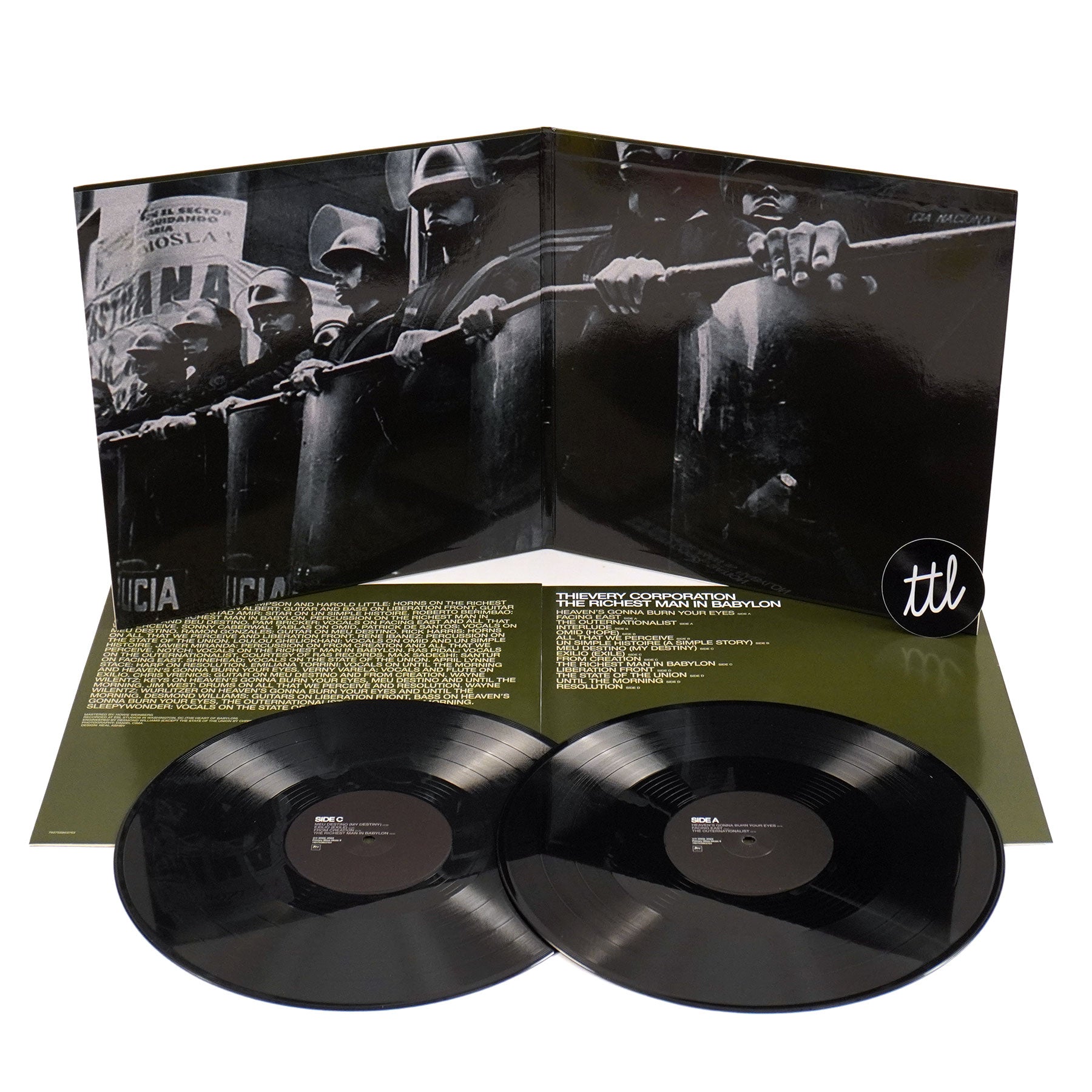 Double vinyl repress of Thievery Corporation's 2002 album. The Richest Man In Babylon is an extension of ideas formed in 2000's Mirror Conspiracy. The fusion of dub, latin, downtempo, and electronica is expanded here with increasing hip hop, breaks, and Indian influence, all blended super smoothly as usual for TC. Like their previous effort, a worldwide range of guest collaborators complete the sound - ranging from female vocalists to Jamaican MCs. Check "Facing East," "The Outernationalist," "Omid," "All That We Perceive," and "The Richest Man In Babylon." Still oh so schmoove. Comes in gatefold sleeve.
