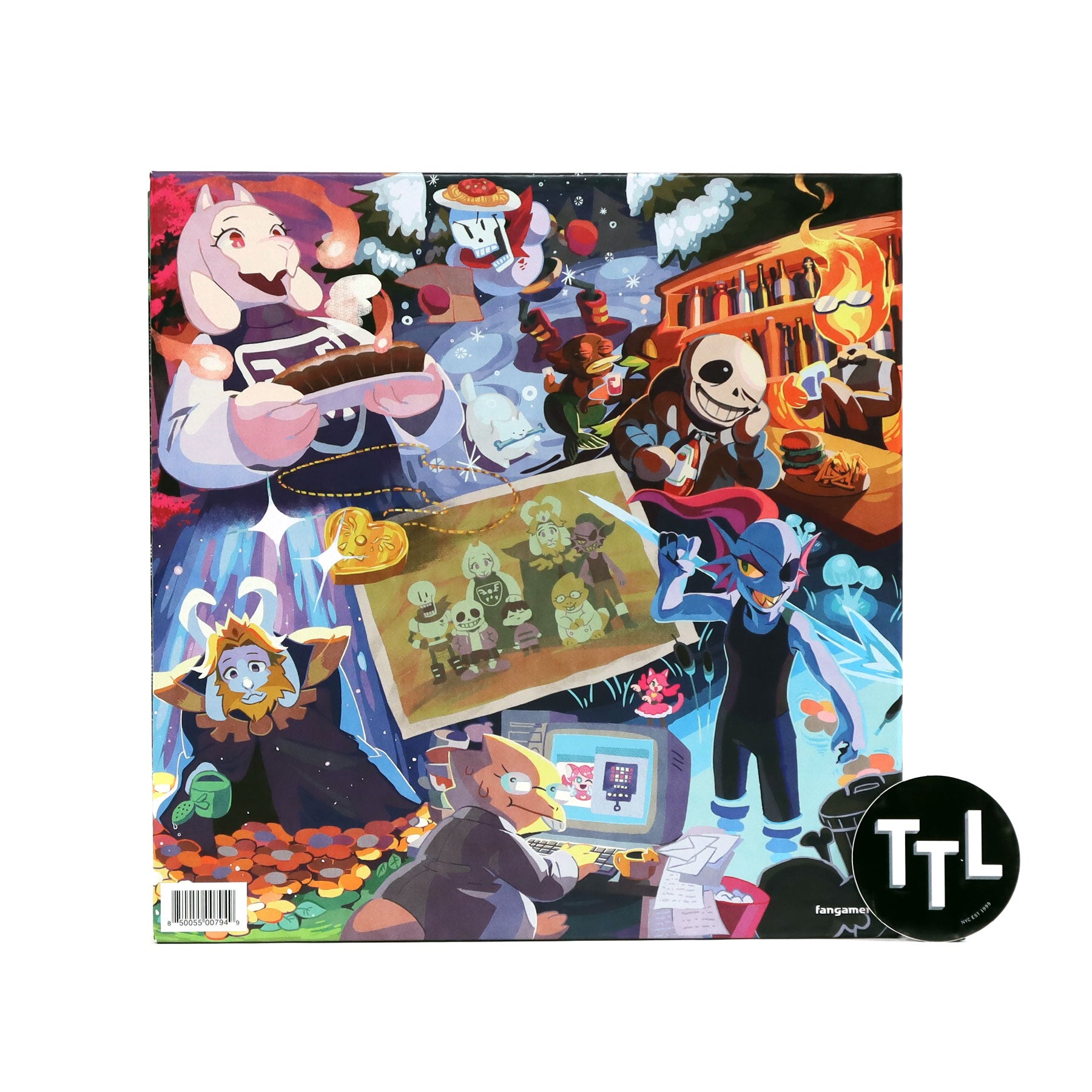 "This massive 5-LP box set is the perfect way to hear the complete UNDERTALE soundtrack all over again, from 'Once Upon A Time' all the way to... 'Dog Dating.' 109 tracks, curated by Toby Fox and newly remastered for vinyl. Filled with beautiful new illustrations by Kaori Takizawa. Liner notes by Toby Fox, Alex Rosetti, Kaori Takizawa, and Go Ichinose (Game Freak)." - Fangamer