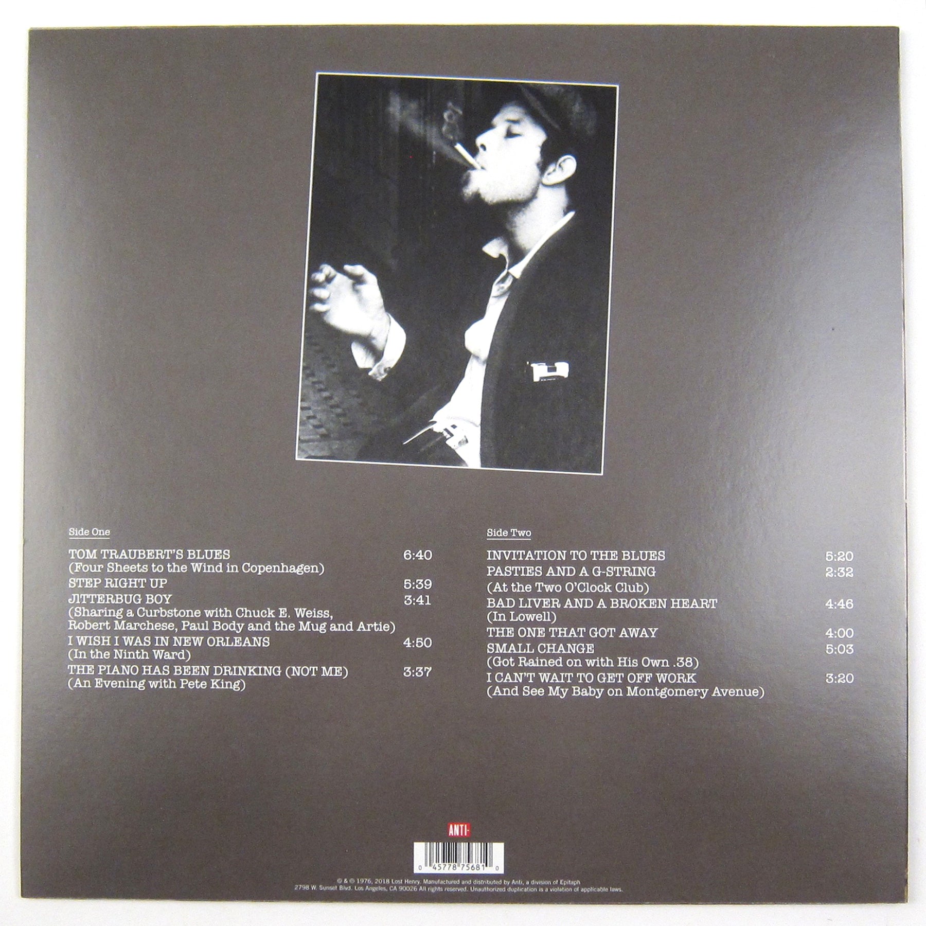 Tom Waits is a brilliant lyricist, owning a writing style that draws from poets likes Raymond Chandler & Charles Bukowski. On Small Change, the Bones Howe-produced 1976 LP from Waits (his third studio album), the words flow like poetry and he delivers every syllable through the one-of-a-kind vessel that is his strangled, unshaven voice — big ups all the cigarettes he must have smoked and all the whiskey he must have consumed. "Tom Traubert's Blue (Four Sheets To The wind In Copenhagen)" is a stunning opener, and the calming string section starkly contrasts the coarse textures of Waits's vocals. Other standouts include "The Piano Has Been Drinking (Not Me) (An Evening With Pete King)," and "Step Right Up," as Waits sings and/or delivers spoken word pieces against heavily jazz-influenced instrumentals. 2018 clear vinyl pressing featuring remastered sound. Limited to 1,000 copies.