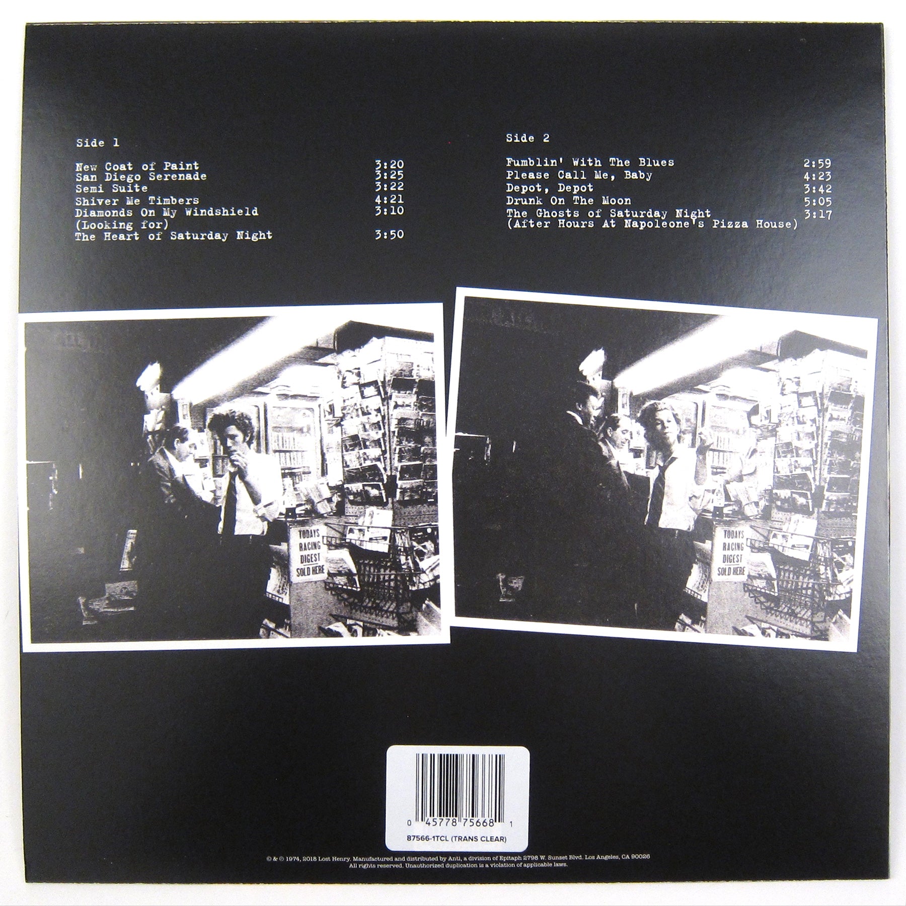 The Heart Of Saturday Night is Tom Waits's 2nd full-length, originally released in 1974. The singer-songwriter's more recent releases may veer toward the experimental, but this early-career record displays Waits in his signature form, pushing a smoky, boozy composition of jazz & blues with sophisticated, poetry-like lyrics laying out a provocative picture of his surroundings. Check out the title track, "Drunk On The Moon," "San Diego Serenade," and "New Coat Of Paint." It's surprising how mature an artist only on his sophomore project can sound. 2018 clear vinyl pressing featuring remastered sound. Limited to 1,000 copies.