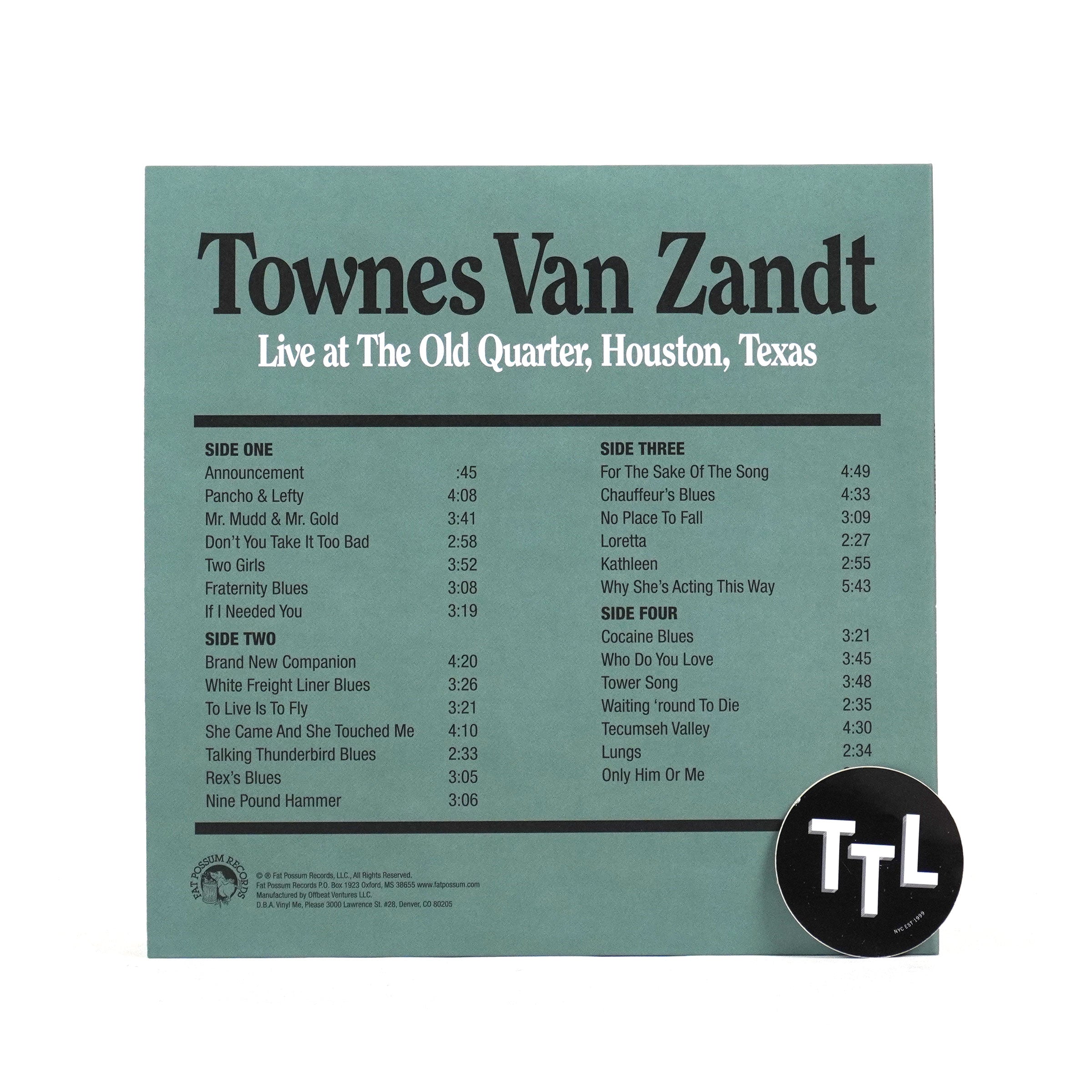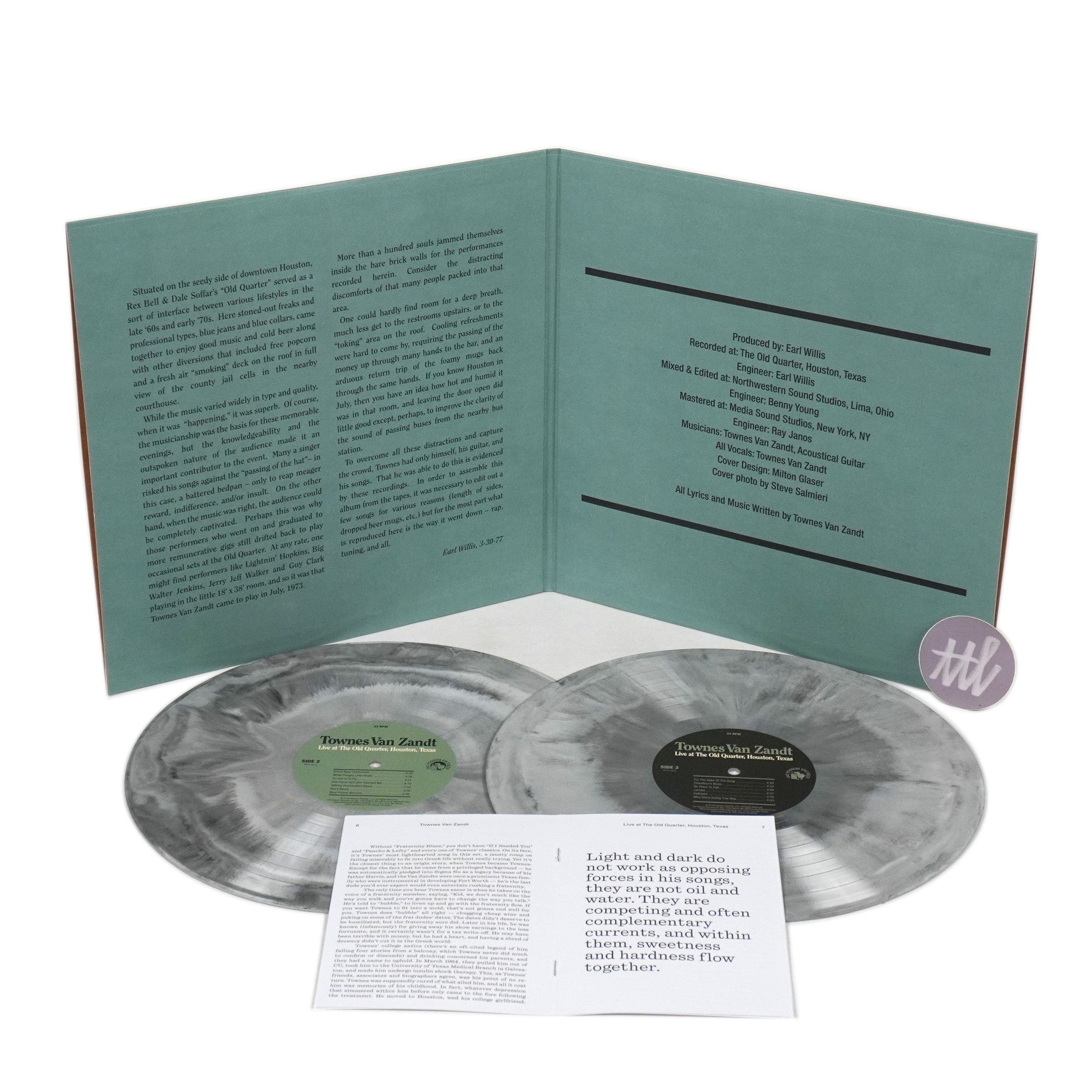 Mid-70s live album from Fort Worth's Townes Van Zandt. Live At The Old Quarter was originally recorded during a series of live performances in 1973 at Houston's Old Quarter on a portable four track by Earl Willis. The intimate setting barely fit 100 people, but allowed for some of the best recordings of Van Zandt to be put to tape. He shows some of his influences in covers of Bo Diddley, Texas bluesman Lightnin' Hopkins, and country picker Merle Travis. The recordings are peppered with Van Zandt's corny jokes and stage banter, further adding to the intimacy. Twenty-seven tracks in all.