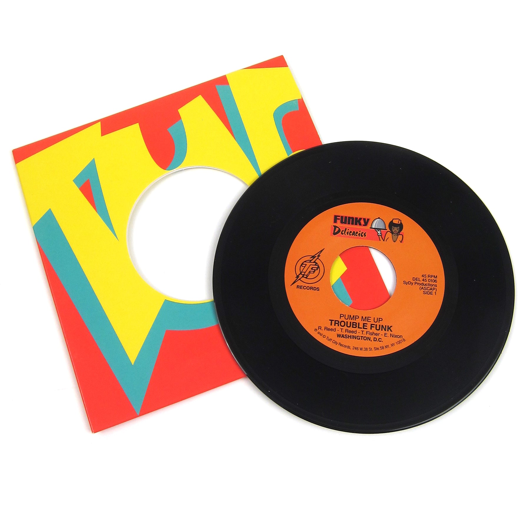 • Say What?! One of the nastiest go-go drum breaks ever put on wax, now in the handy 45 format. Trouble Funk's "Pump Me Up" is a pure shot of unadulterated funk from Washington D.C., a prime example of the regional go-go style that has been sampled by everyone (and i mean everyone) from Public Enemy, Kurtis Blow, and M/A/R/R/S, to Squarepusher, and even George Michael. Obviously the drums are the big attraction here, but the vocals ("Pump pump pump me up!") has become somewhat of a scratch standard as well. You already know what to do, cop doubles and run that break! "Let's Get Small" on the flip, another equally funky and heavily sampled bomb from the D.C. innovators.