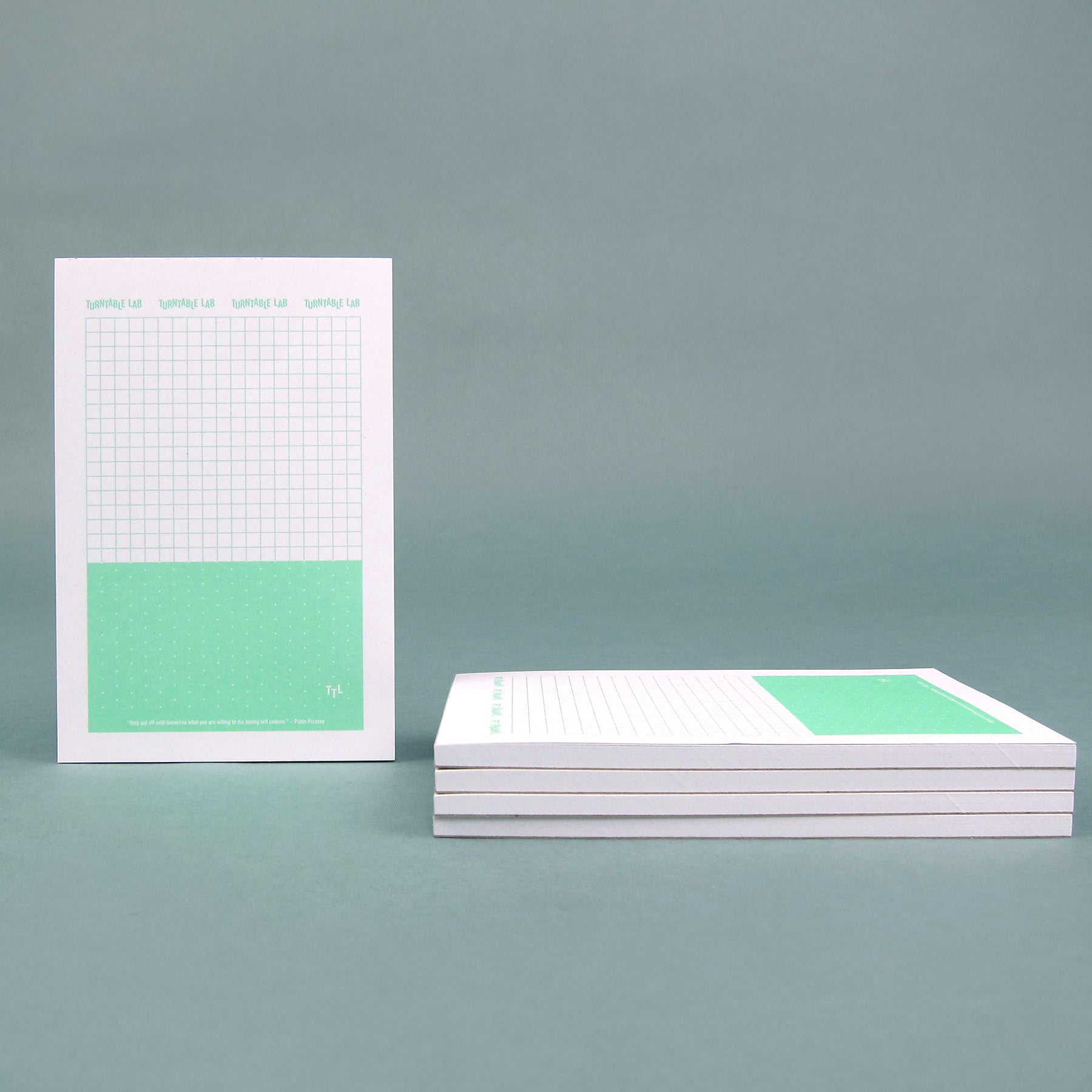 Due to popular demand, we've decided to offer our notepads for sale in packs of 5. We've been making these pads for over 10 years now (prob 50K+ out there in the world), maybe you've used one before. We think you'll find the half-grid useful and the light green is easy on the mind.