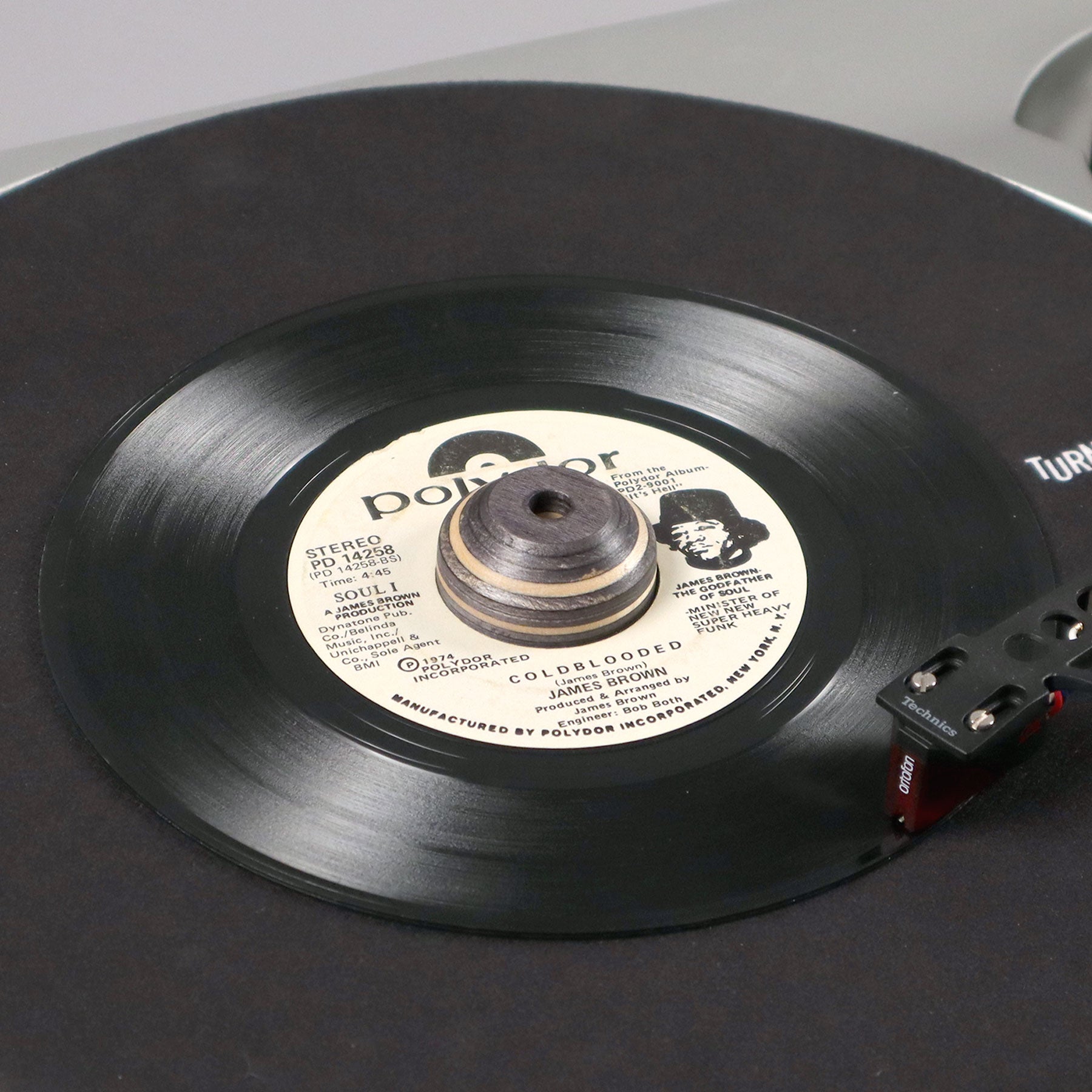 • adaptor for 7-inch 45rpm records made from North American rock maple skate wood