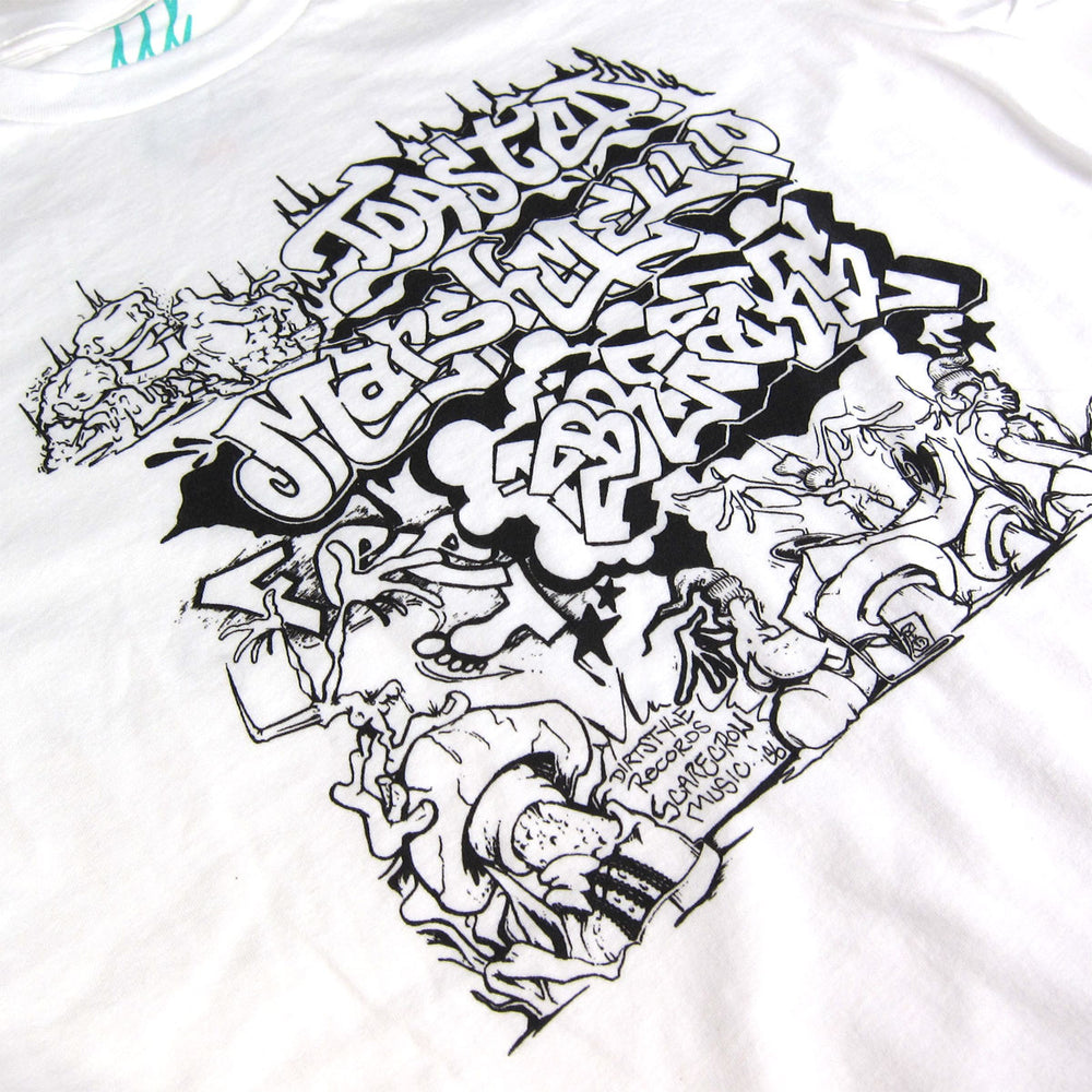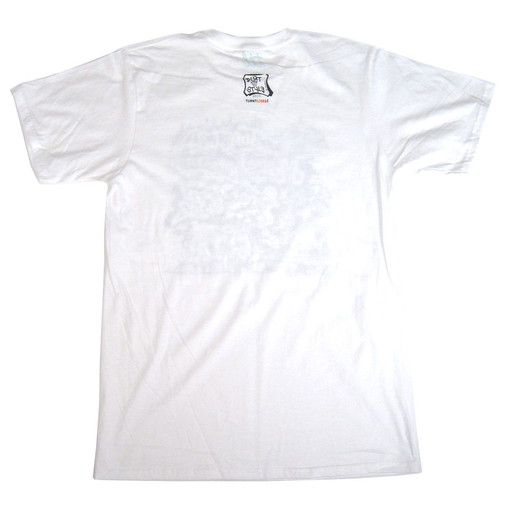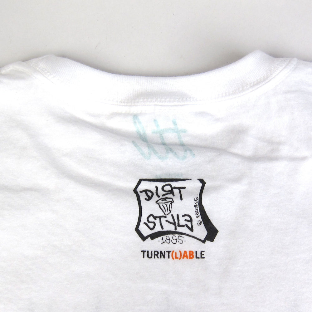 Aaahh.. Freshhh! You know what it is. Q-bert's Toasted Marshmallow Feet Braxe, a certified Dirt Style classic from 1995, gets the official shirt treatment courtesy of Thud Rumble and TTL! Any self-respecting scratch DJ has cut up copies of this one (this reviewer stared at the cover for days while trying to master the flare). Features the iconic cover art by SF graffiti legend SPIE 1 TDK printed on the front and small Dirt Style x TURNT(L)ABLE (vintage era-appropriate TTL logo baby!) hit on the back below the neck. Printed on all cotton, standard fit (Anvil-style) tees. Limited edition.