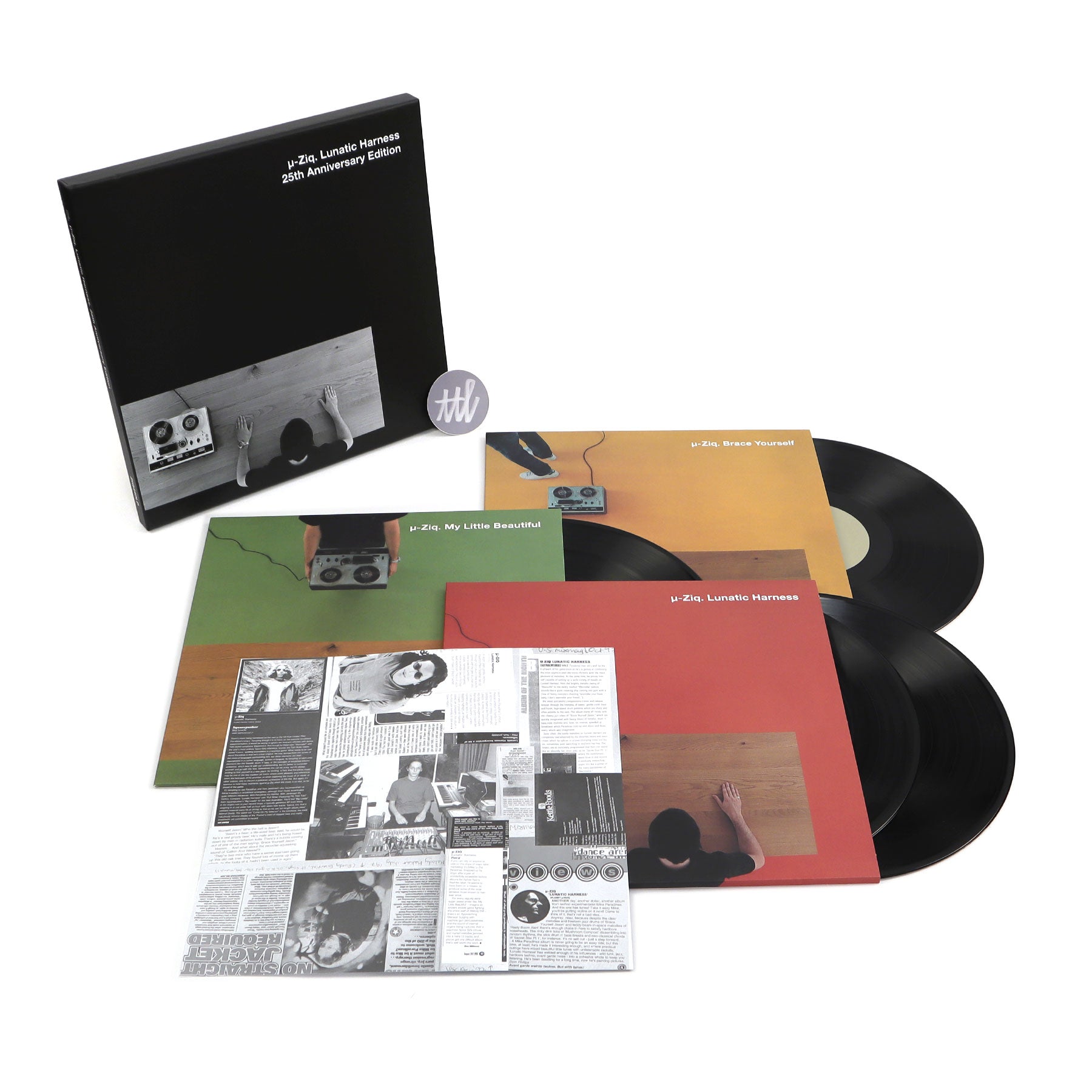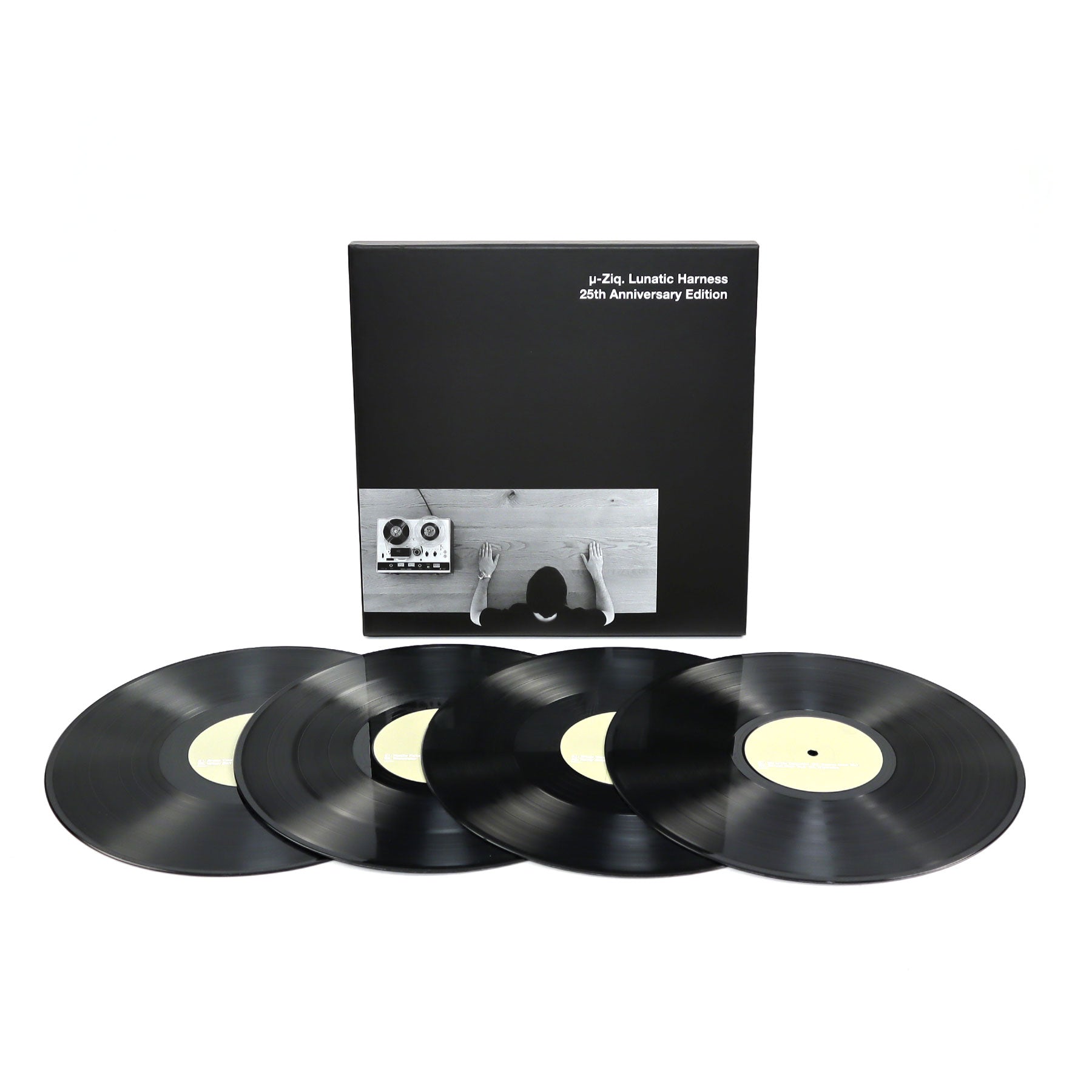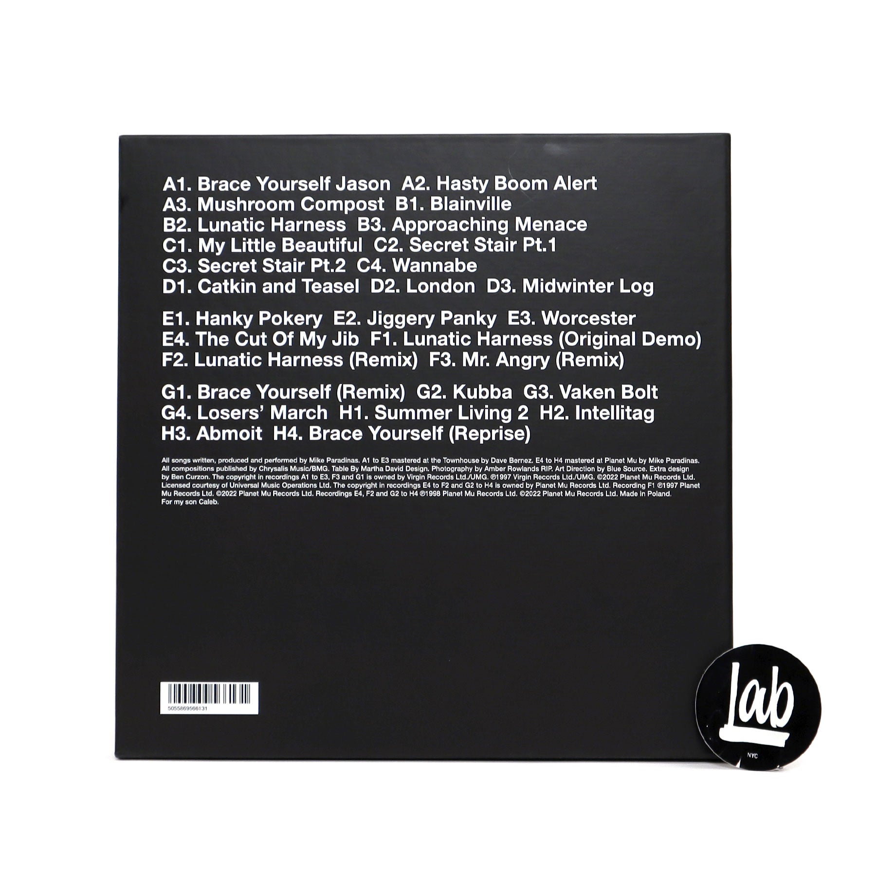 Brace yourself!!! Widely considered to be µ-Ziq’s finest work, Lunatic Harness was originally released in 1997 on Virgin Records (imagine!). You might describe the album (and its adjacent EPs) as an expansion pack for the lush sonic world inhabited all too briefly by Richard D. James on The Richard D. James Album - it's full of the same woodchipped breaks, pillowy strings and detuned leads in beaming technicolor - but to do so would be to rob µ-Ziq, aka Planet Mu boss Mike Paradinas, of his singular mood building chops (“Secret Stair #1,“ “Worcester”) or his ability to bridge the musical DNA of MoWax and Metalheadz in the span of 2 bars ("Catkin And Teasel”). You'd also be discrediting his jungle pass (eg. the street level Roland hoovers on "Summer Living” - it’s worth pointing out Mike's the only real Londoner of the IDM 'big four’ if there is such a thing - Aphex, Squarepusher, Paradinas and Vibert), or his ability to breathe new life into well-worn baggy pants downtempo (“Mushroom Compost,” “Blainville”). Other highlights: “My Little Beautiful,” “Hasty Boom Alert” (crikey!), “Hanky Pokery,” “Intellitag.” This much-needed 4LP boxset edition restores the album onto vinyl for the first time in 25 years, alongside the accompanying Brace Yourself and My Little Beautiful EPs, plus 3 previously unreleased bonus tracks from the era. 28 tracks in total, spread across four LPs, each individually packaged in full color repro pic sleeves with slipcase. Recommended!