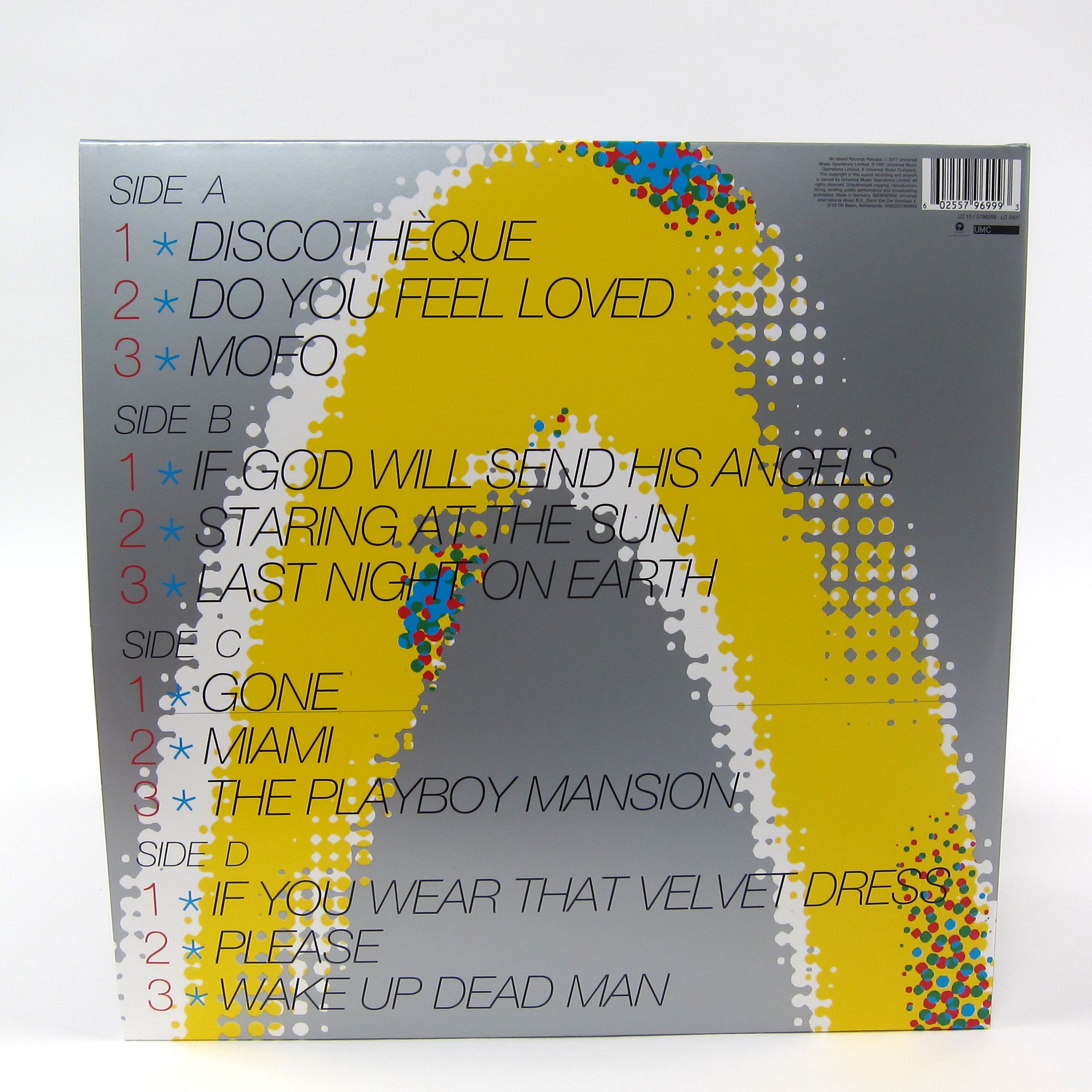 Deluxe pressing of U2's ninth album. Originally released in 1997, Pop found the Irish rock band exploring new production techniques to reinvent their sound for the 90's. Here producers Flood, Howie B, and Steve Osborne infused techno, dance, and electronic elements via sampling, drum machines, and loops. These methods were mostly new to U2 and resulted in a fresh style for Bono and Co. Includes the singles "Discoteque," "Staring At The Sun," "Last Night On Earth," "Please," "Mofo," and more. Comes pressed on double 180 gram vinyl with fully remastered sound for maximum listening pleasure.