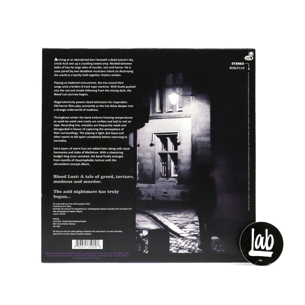 Originally released in 2011 on CD-R (only 100 copies!!!), Blood Lust is back on vinyl. The first wax run, which happened in the same year, sold out instantly, and another repress came a year later, selling out fast again, but not before it crashed Rise Above Records' website. And that is important to note because up until that point, Uncle Acid & The Deadbeats had been shrouded in mystery, known to the outside world only through music posted on Myspace and/or Youtube + Volume 1, which was also a CD-R album. There were no clear pictures published of the band, nor had they performed live. It's was solely the band's "addictive blend of heavy, melodic and garage horror-rock" that had captured the attention of the underground. Almost 8 years later, the project sounds as dark and filled with doom as ever, an electrifying body of work that works as an early indication of why the UK band would sustain such a dedicated fan base for years to come (check out the band band's 2018 work, Wasteland). Key tracks are: "I'll Cut You Down," "Ritual Knife," "Over and over Again," and "Death's Door."