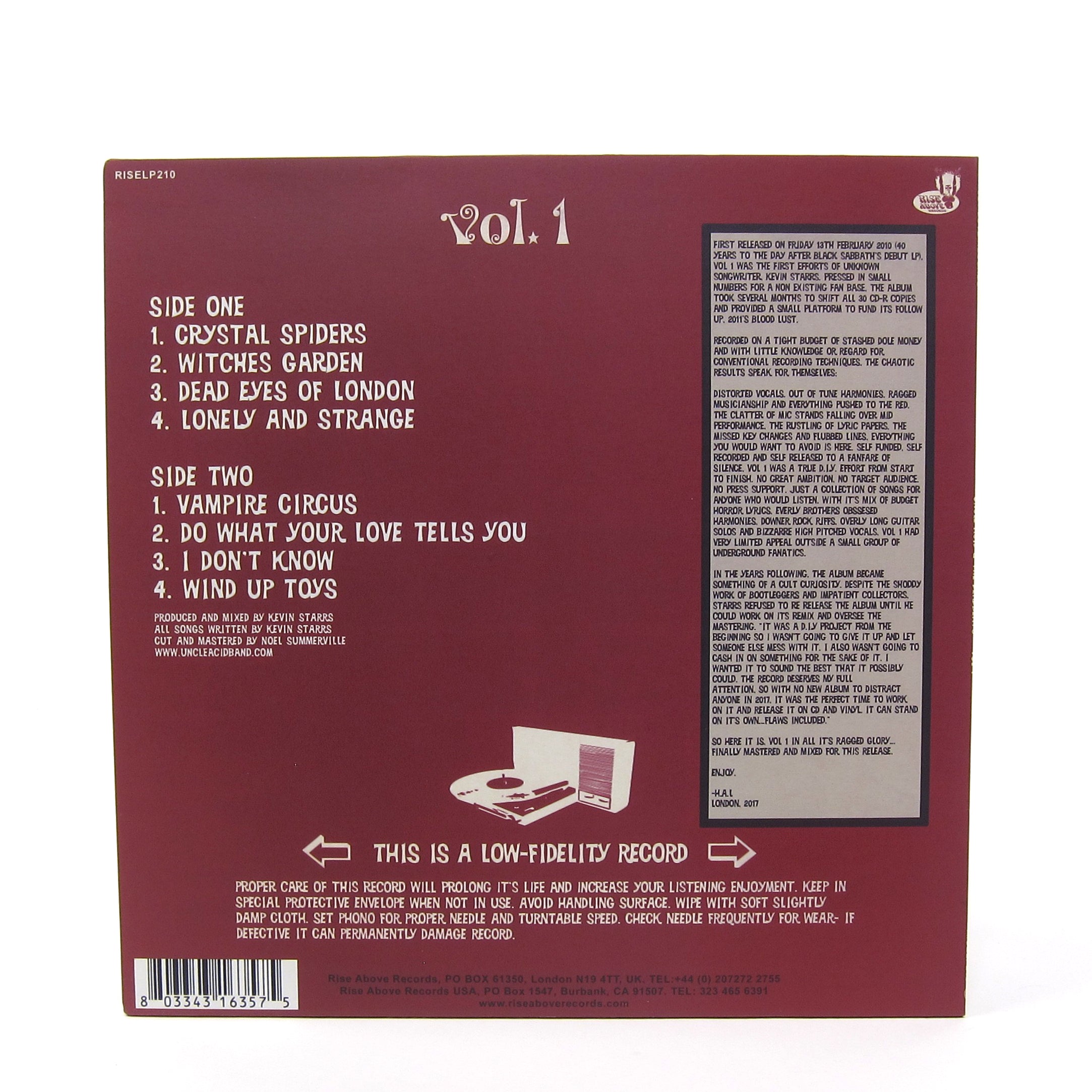 Originally released locally on CD-Rs (30 copies only), here is the 2010 debut LP from Cambridge, England's Uncle Acid & The Deadbeats. The same year, Vol.1 saw a bootleg vinyl release (extremely limited), and now, the wait is finally over, as Rise Above Records properly brings back the coveted 8-tracker. Although it was 2011's Bloodlust that earned the band a larger recognition (including opening for Black Sabbath's 2013 reunion tour), Vol.1 certainly established a fervent, cult-like fanbase for the Kevin Starrs-fronted group. Take a listen to the album and it's easy to see why; indebted to the late '60s and early '70s (the band has been described as "the original Alice Cooper band jamming in a cell with early Black Sabbath and the Stooges"), the band's raw stoner rock/proto-metal/psychedelic sound is an authentic look back at some of the biggest names in classic rock, and fans of that vintage good good will certainly appreciate this welcome repress. Check out "Crystal Spiders," "Dead Eyes of London," "Lonely and Strange," and "Witches Garden" (love the horror-themed lyrics also: "I can feel two spiders in my mind / Tangled thoughts in webs they left behind").