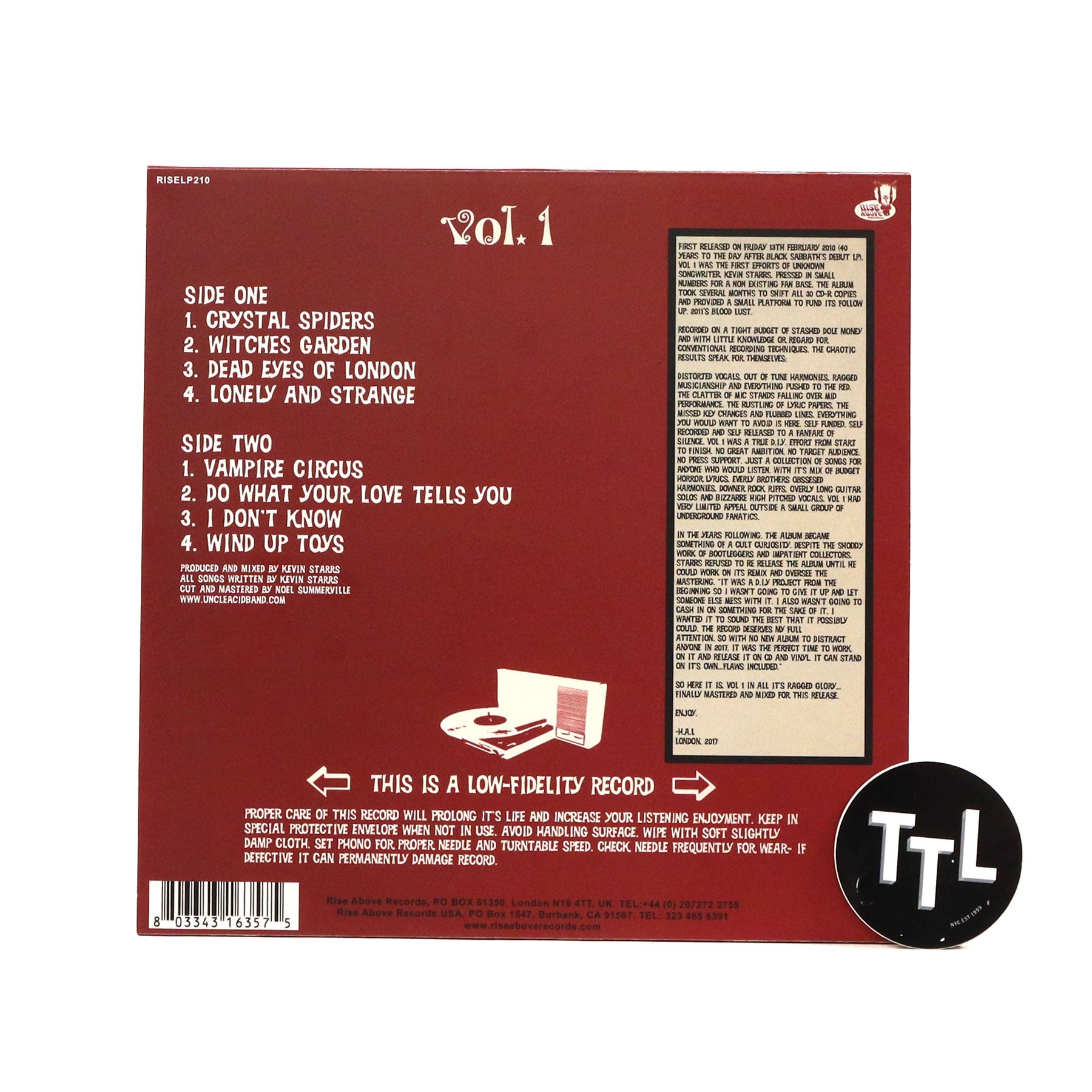 Originally released locally on CD-Rs (30 copies only), here is the 2010 debut LP from Cambridge, England's Uncle Acid & The Deadbeats. The same year, Vol.1 saw a bootleg vinyl release (extremely limited), and now, the wait is finally over, as Rise Above Records properly brings back the coveted 8-tracker. Although it was 2011's Bloodlust that earned the band a larger recognition (including opening for Black Sabbath's 2013 reunion tour), Vol.1 certainly established a fervent, cult-like fanbase for the Kevin Starrs-fronted group. Take a listen to the album and it's easy to see why; indebted to the late '60s and early '70s (the band has been described as "the original Alice Cooper band jamming in a cell with early Black Sabbath and the Stooges"), the band's raw stoner rock/proto-metal/psychedelic sound is an authentic look back at some of the biggest names in classic rock, and fans of that vintage good good will certainly appreciate this welcome repress. Check out "Crystal Spiders," "Dead Eyes of London," "Lonely and Strange," and "Witches Garden" (love the horror-themed lyrics also: "I can feel two spiders in my mind / Tangled thoughts in webs they left behind").