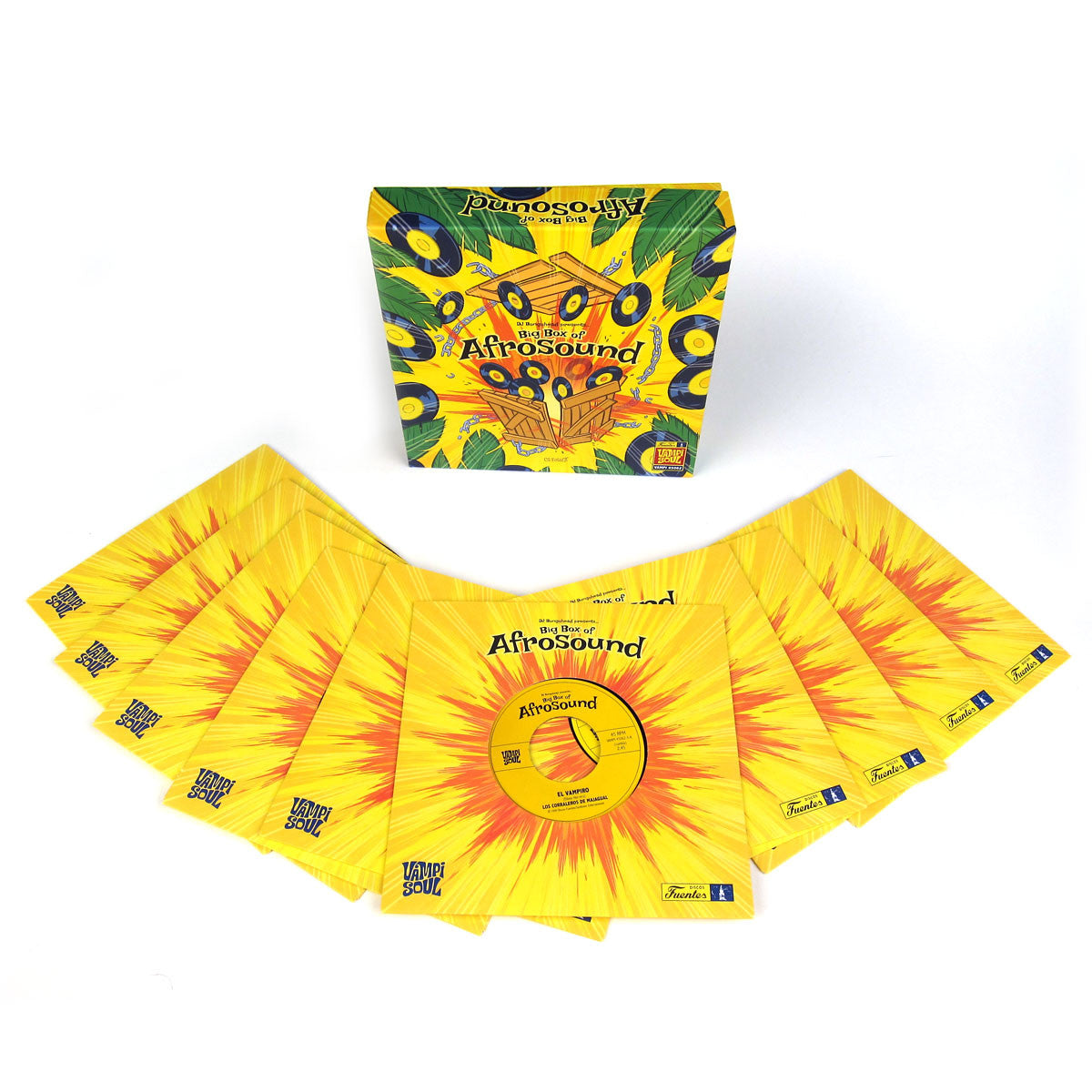 Incredible collection of rare tracks from Colombia's Discos Fuentes label reissued! DJ Bongohead and Vampi Soul have put in the leg work to put together this amazing boxset featuring ten 45's of hard-to-find tracks from the 60's and 70's golden era of the seminal Discos Fuentes imprint. This is a veritable treasure trove of rare latin sounds, with many tracks featured have been reissued for the first time, just for this set! From compiler Pablo Ygelsias aka DJ Bongohead - "The main idea was inspired by Iñigo and Vampisoul's brilliant box of Latin soul and boogaloo 45s from a few years back. This way I could do a special collection of ten 45s, not just a few singles, drawing from both of the already issued volumes of Afrosound and also putting in some selections that Iñigo and I wanted to have on 45. Some would be tunes released on this format for the first time, while others were cuts nearly impossible to find in the original vinyl; some would be specially remastered just for this project, coming from deep within the vaults at Fuentes HQ in Medellín. But the most important criteria was the tracks had to be fun and/or "crazy"? These twenty jams represent the taste not only of myself and Iñigo, but also several trusted advisors and fellow travelers down the road of Colombian music who tipped me off to certain amazing Fuentes tracks and artists over the years." Presented in custom box with extensive liner notes and illustrations from CS Fossett.