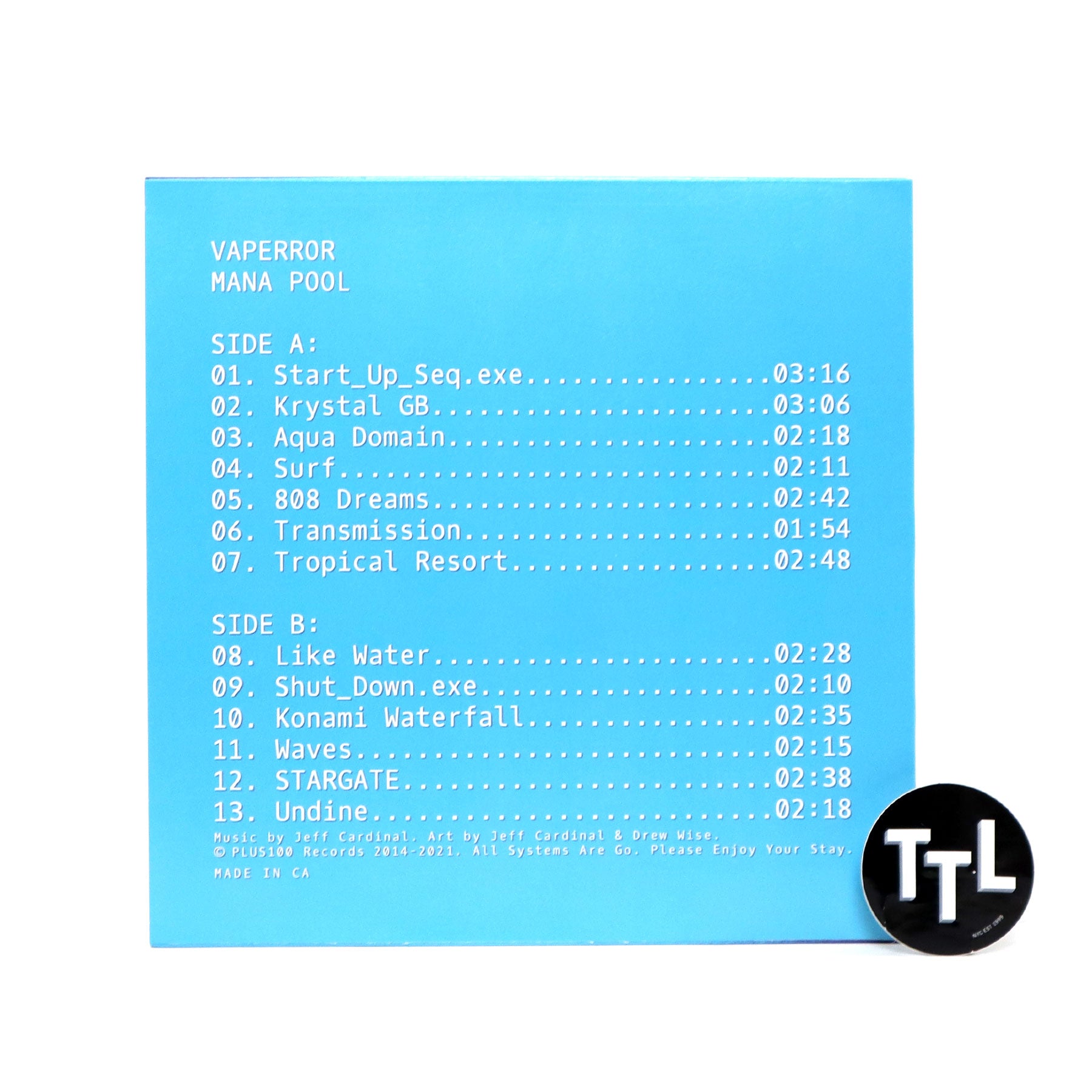 "This is the album that started it all. Trap and R&B beats inspired by the flow of water. Released in June 2014, Mana Pool is a classic in the vaporwave scene. Vinyl includes 4 bonus tracks. Edition of 550 in a new Heaven Sky variant. Opaque Sky Blue and White vinyl was mixed in A side / B side configuration to create this beautiful record. Product photo is an actual photo of the vinyl record, color-corrected in Photoshop for accuracy. Due to the vinyl manufacturing process, each record is unique." - PLUS100 Records
