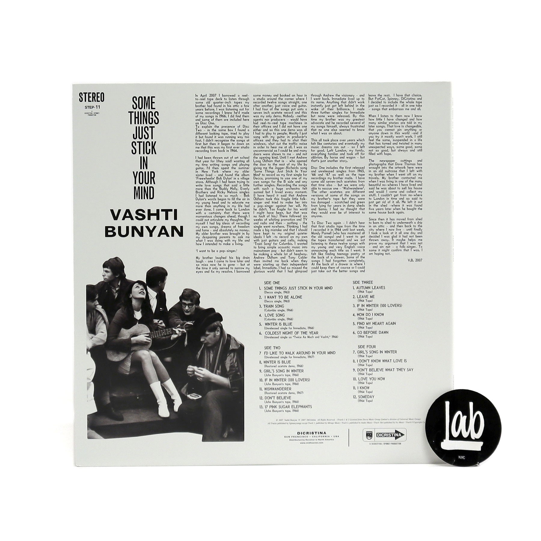 "Following the amazing success story of Vashti Bunyan's recent re-emergence as an artist after an exile of over 30 years, comes the release of Some Things Just Stick In Your Mind, a comprehensive compilation of early recordings dating from the period prior to Vashti's classic Just Another Diamond Day album which was originally released 1970. Titled after Vashti's (Jagger/Richards-penned) debut single which opens the compilation, this double-album represents an attempt to both open out and draw a line under the past, and also to try to set the record straight about the disparity between how Vashti viewed (and still views) herself against the way she has been popularly perceived. Widely construed as a folk singer -- a tag she fundamentally disagrees with - these recordings instead reveal Vashti as a pop singer, however 'fragile' and unique. Double LP version, deluxe Stoughton gatefold packaging." - Dicristina Stair Builders
