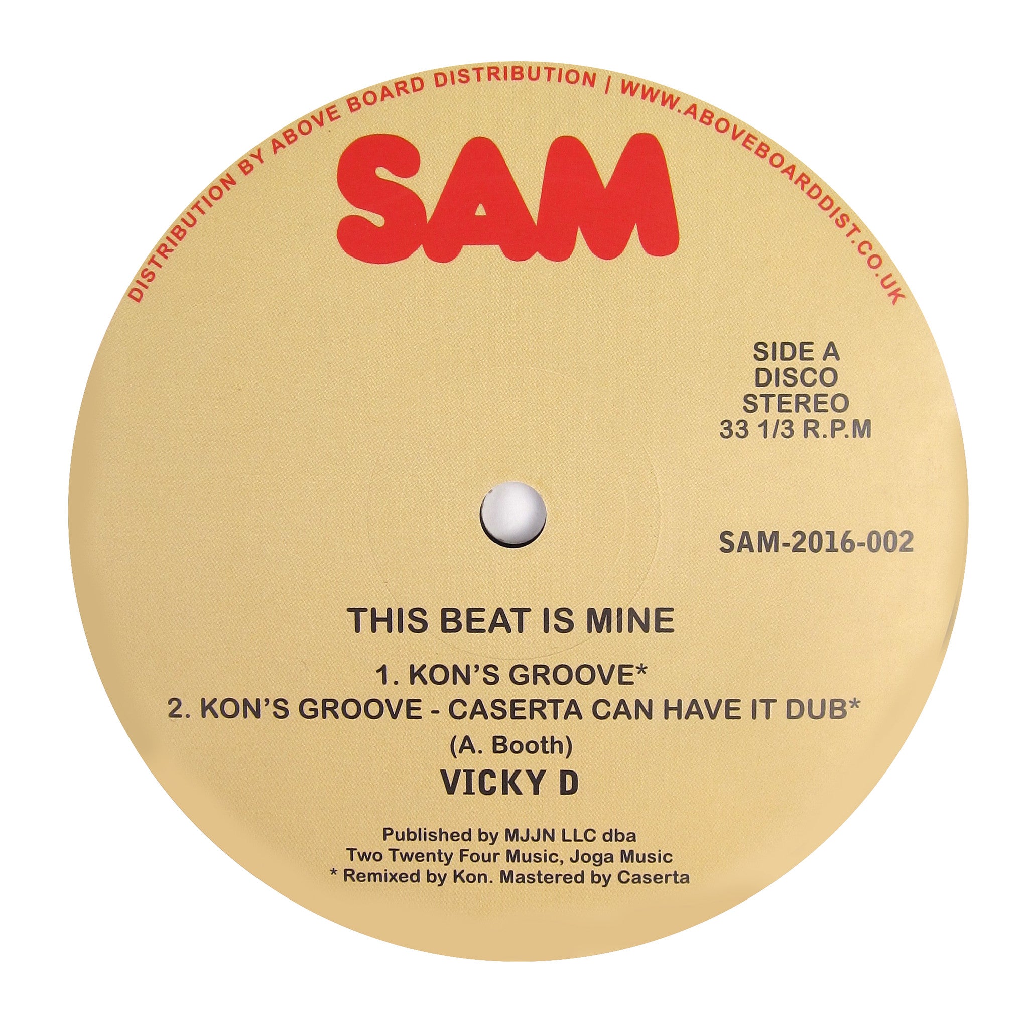 Just party down and do what you wanna do. Legit repress of Vicky D's boogie bomb, backed with all-new Kon mixes! Originally released in 1981, "This Beat Is Mine" has one of the most infectious synth hooks of all time atop of a killer groove that has 'nuff funky bass work to spare. The original 12" mix is surefire party starter produced by Gary R. Turnier (Of Gary's Gang fame) and Andre Booth (Of Northend, B.B.C.S. & A fame) and gets featured in its full length glory with instrumental and acapella versions. On the flip, Boston digger/dj/edit maestro Kon lends his magic touch for a respectful mix tuned in for modern dance floors. Also includes a special dub version of Kon's mix by Caserta. Essential cut for the boogie funk enthusiasts. Recommended.