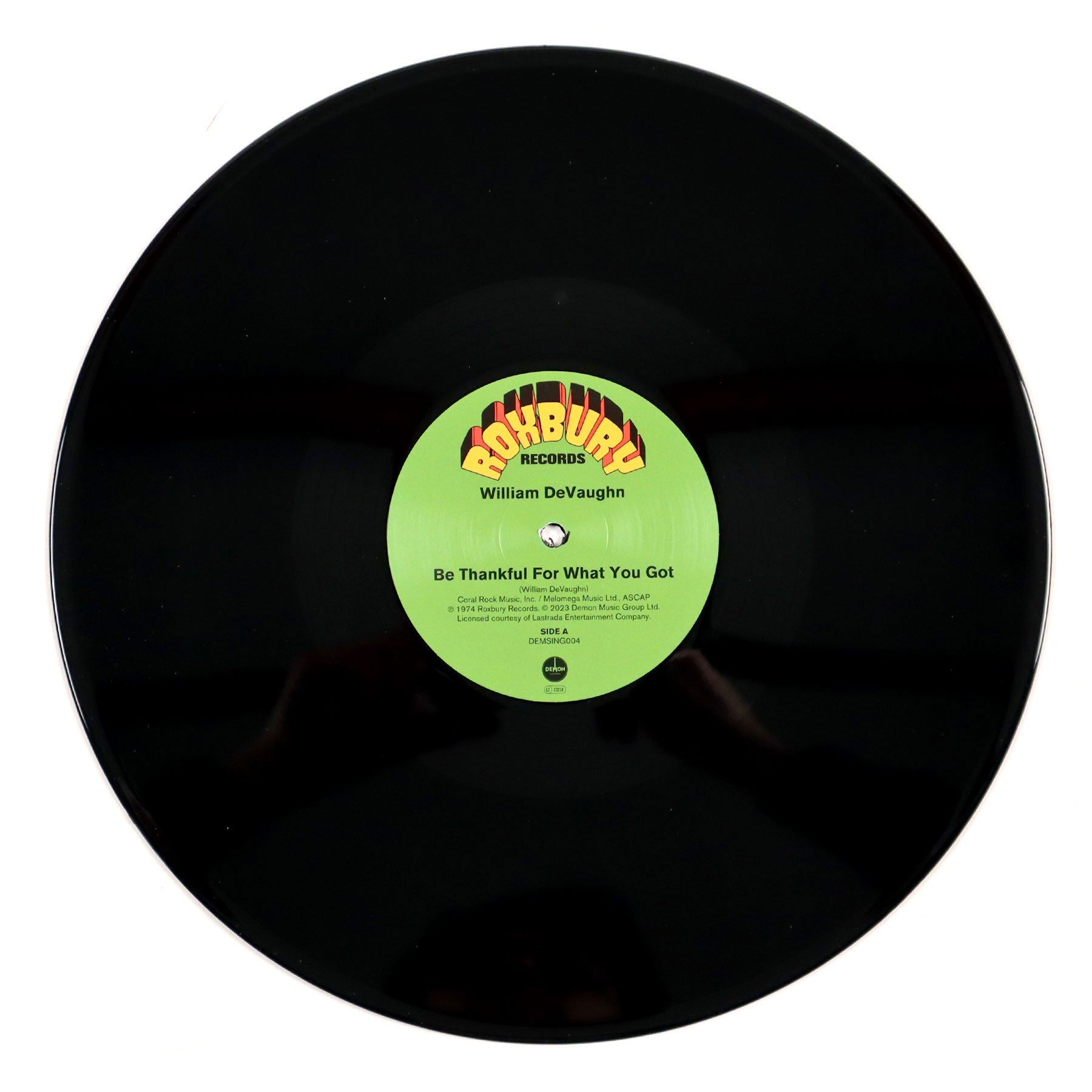 "William DeVaughn in the early 70s was a part time singer and government employee. He wrote a song called 'A Cadillac Don’t Come Easy', which was eventually re-written to become 'Be Thankful for What You Got', in 1972. Recorded at Sigma Sound Studios in Philadelphia, the session featured an array of talented members of the MFSB group. With a sound and content influenced by Curtis Mayfield, its simple and encouraging lyrics hit home, to the extent that it’s become an enduring soulful, disco hit for music aficionados all over the world. Now presented here in a brand new 12' sleeve and backed with the beautiful 'Blood Is Thicker Than Water' on side B." - Demon Records