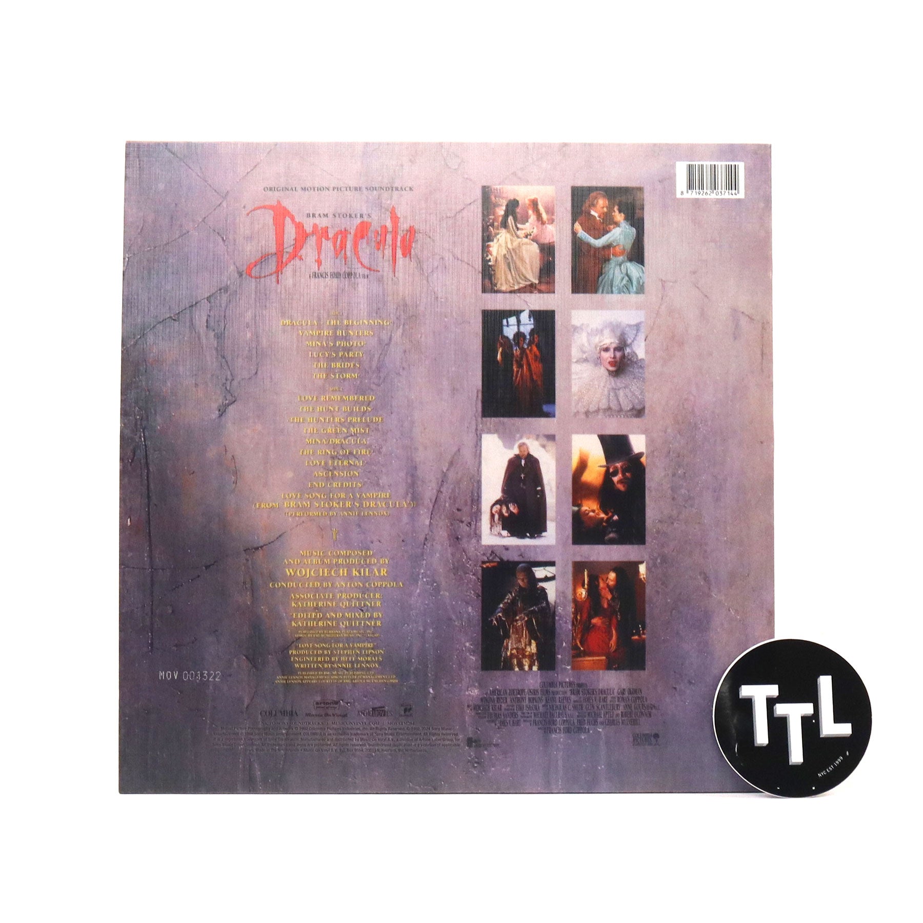 "Coppola decided that he wanted a composer with classical eastern European sensibilities. After listening to a few pieces from fellow Pole Wojciech Kilar, Coppola was convinced that he had found his man. He called him and offered the assignment, which Kilar gladly accepted as he was very impressed with Coppola's cinematic success. For his soundscape, Kilar chose to utilize traditional leitmotifs. Besides, it features 'Love Song For A Vampire' by Annie Lennox of the Eurythmics." - Music On Vinyl